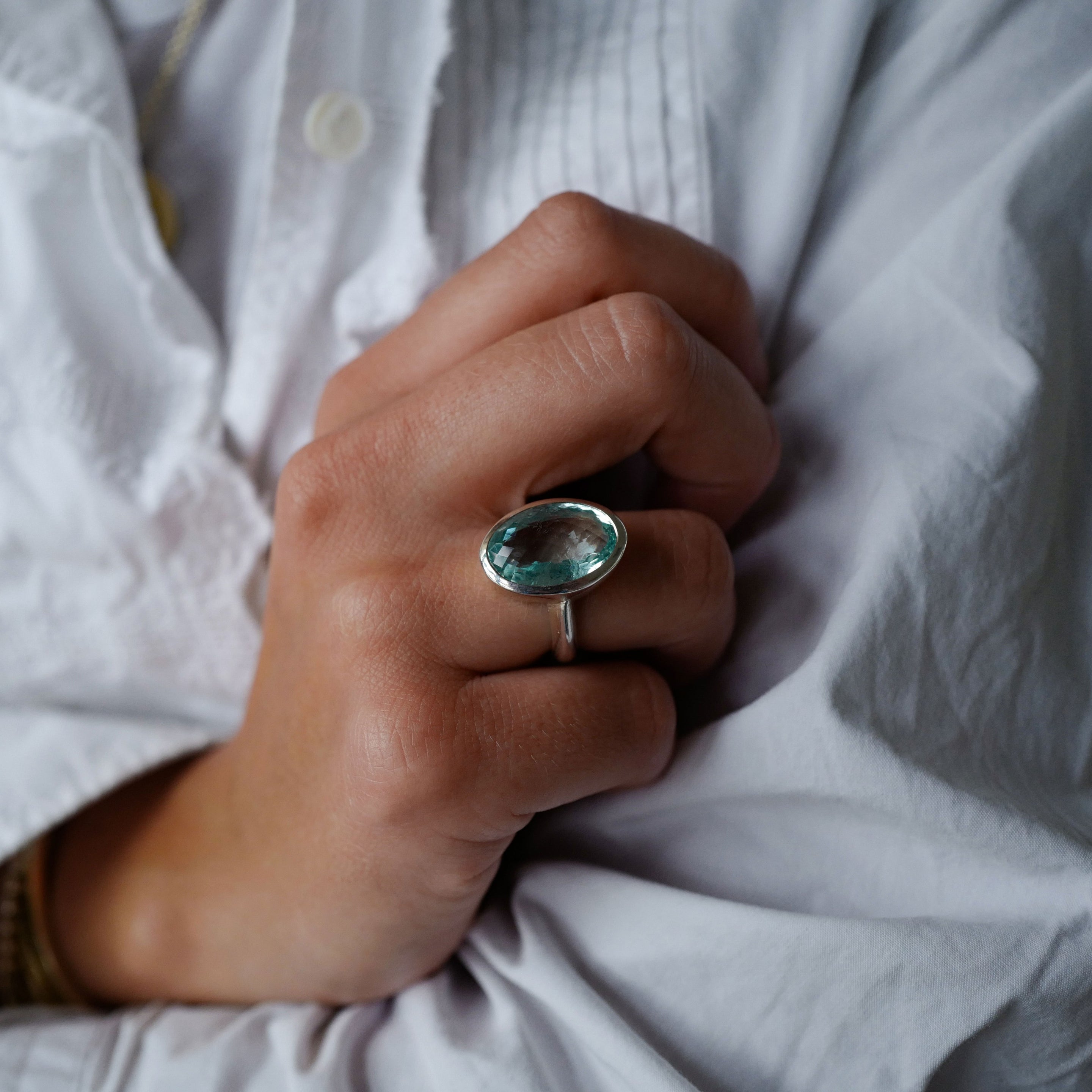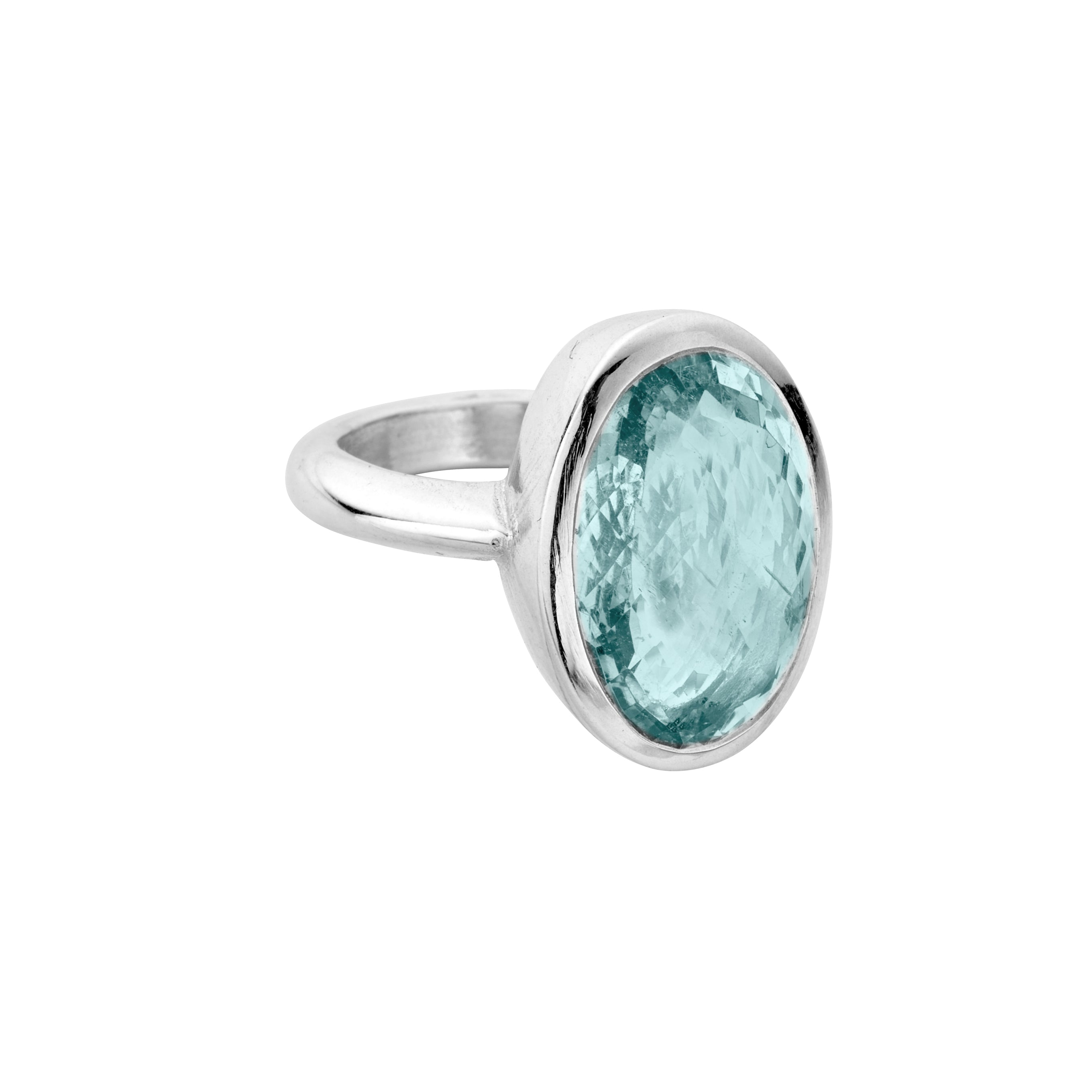A beautiful 9.00ct oval aquamarine has been lovingly hand set into a solid sterling silver setting. Named Aarna, translating to "wave", Daniella was inspired by the beautiful blue hues of the ocean when creating this design.
