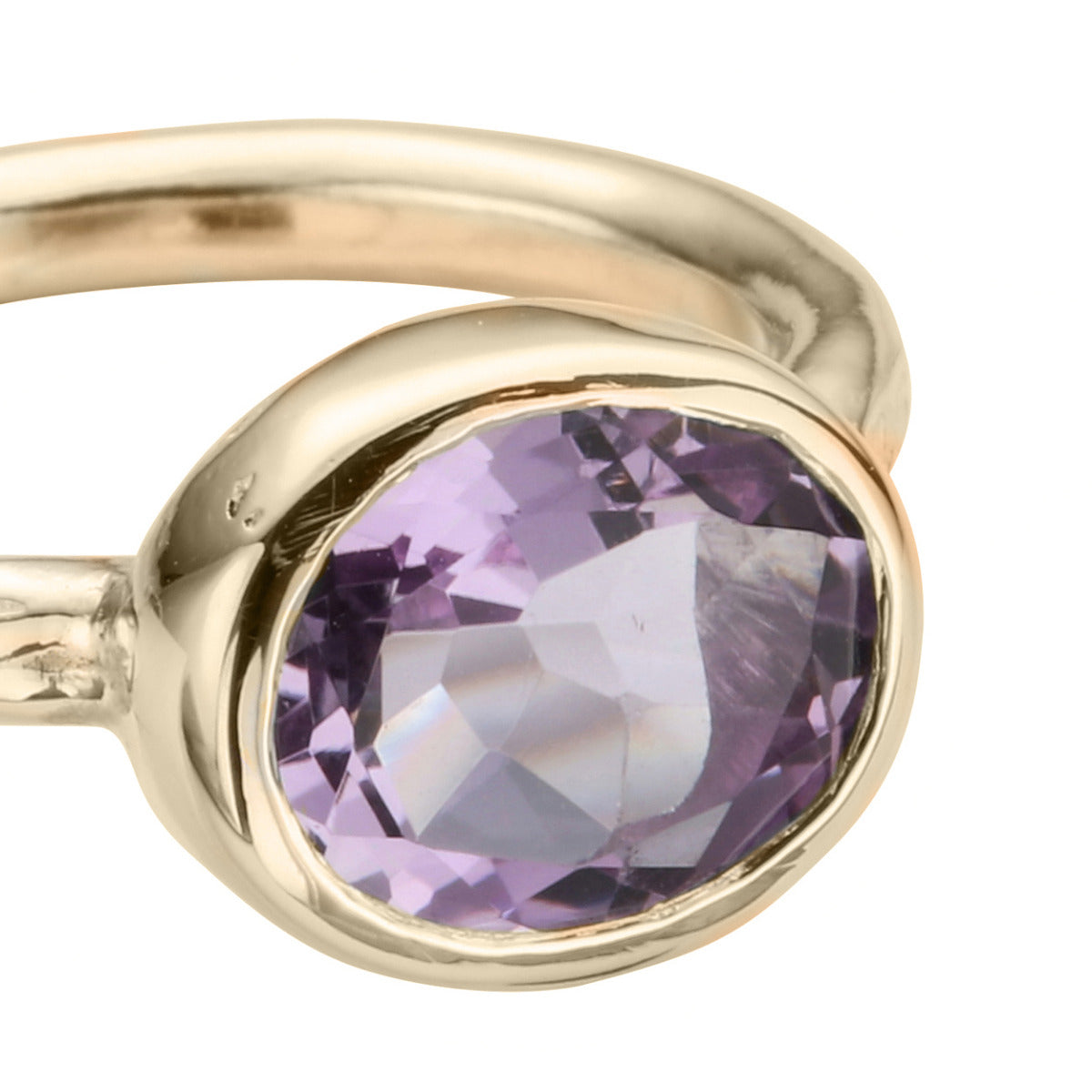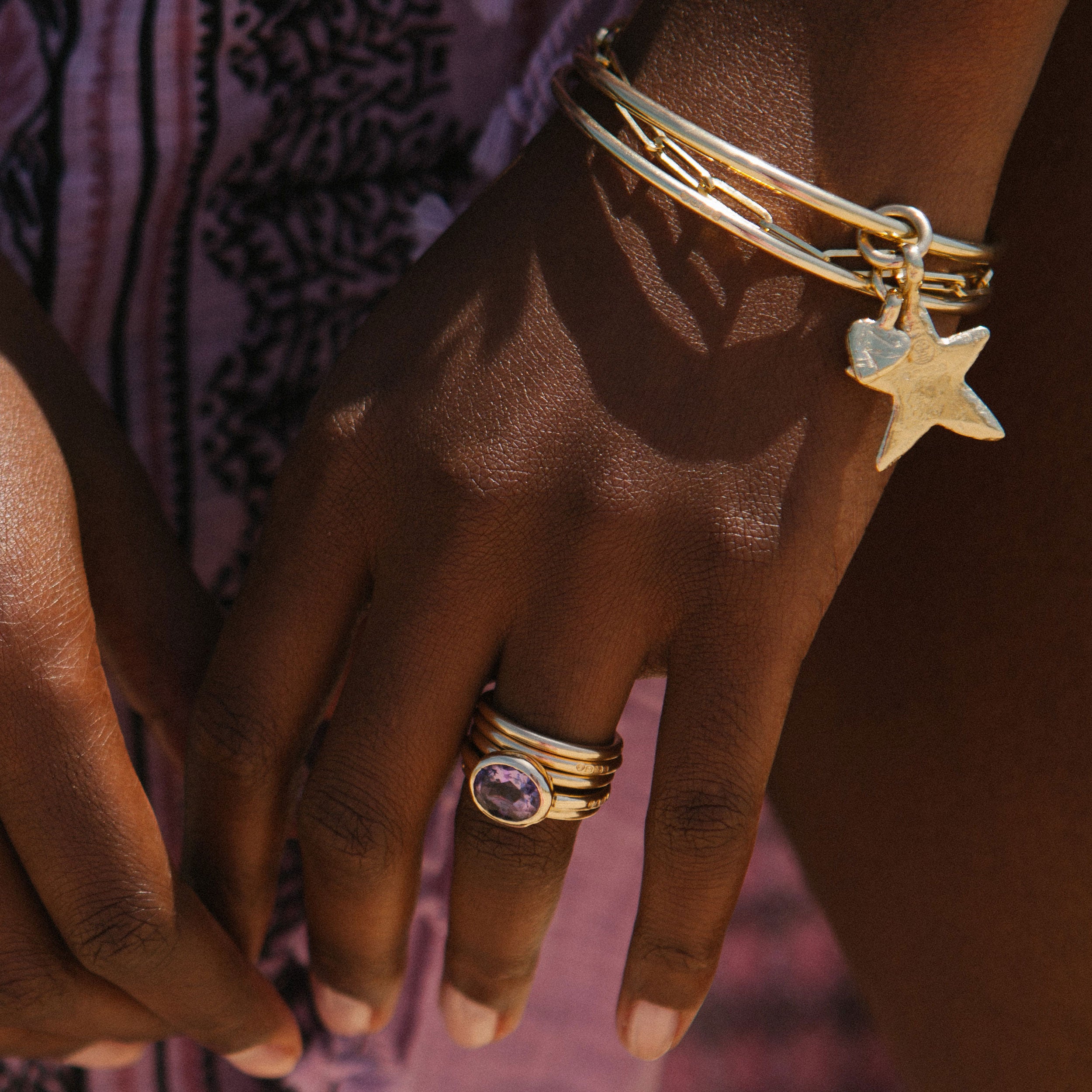 Handcrafted in England using 100% recycled 9ct yellow gold and set with a responsibly sourced amethyst stone by the esteemed British jewellery brand Daniella Draper. Believed to promote calmness and clarity, amethyst resonates with those seeking balance and serenity. Add a touch of sophistication to your ensemble with this beautiful piece designed to be treasured for lifetimes to come.