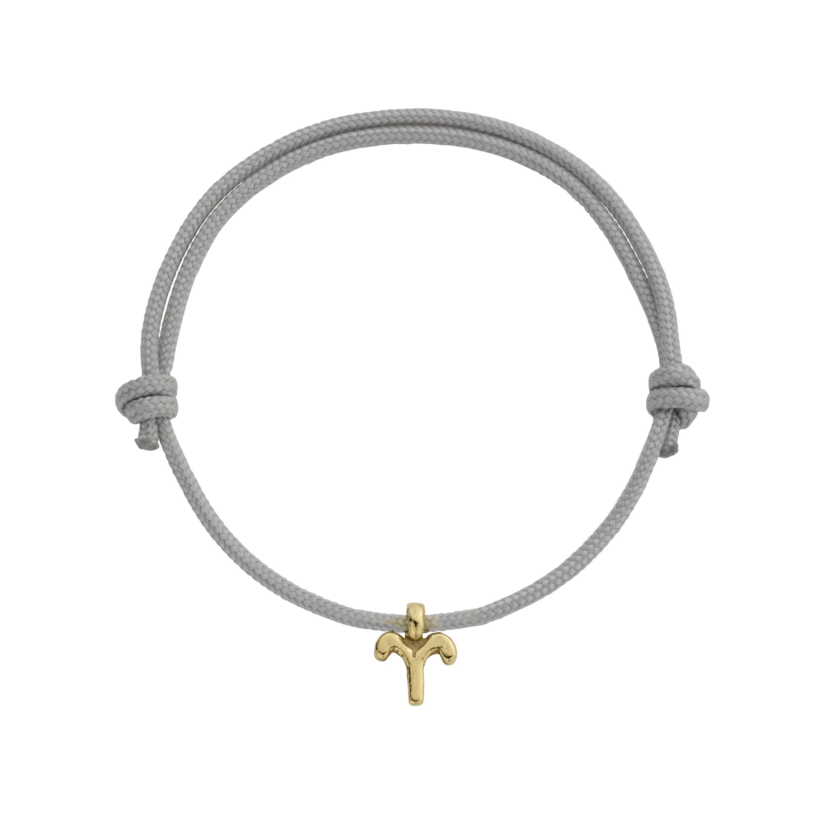 The Aries Mini Horoscope Charm, made using 100% recycled solid 9ct gold, is threaded onto an adjustable sailing rope. One of our most popular & easy to wear pieces, this sailing rope comes in three colours: black, pink or grey.