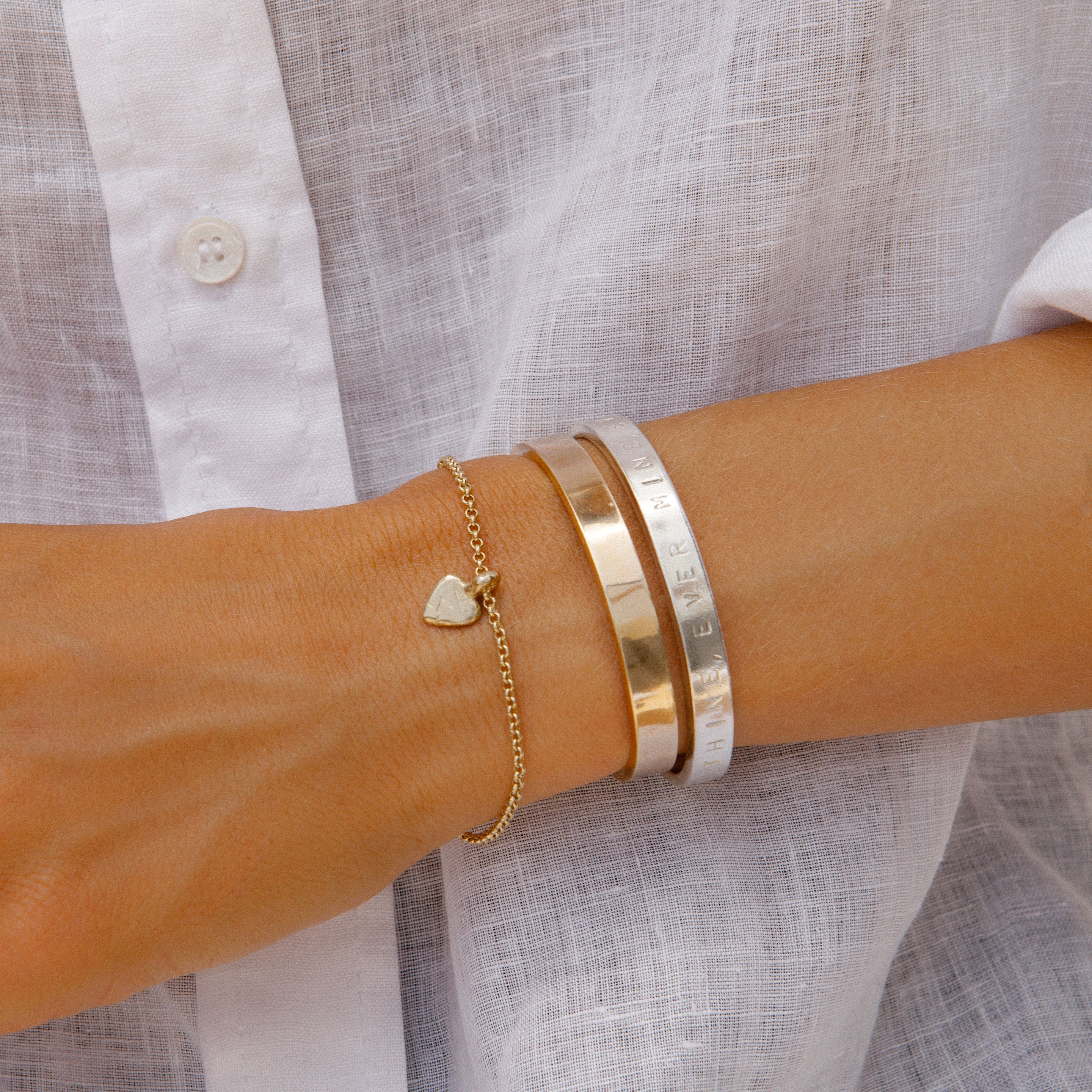 The Baby Heart Chain Bracelet is made using 100% recycled solid 9ct yellow gold. Wear alone or stack with other DD bangles to create your own unique look.