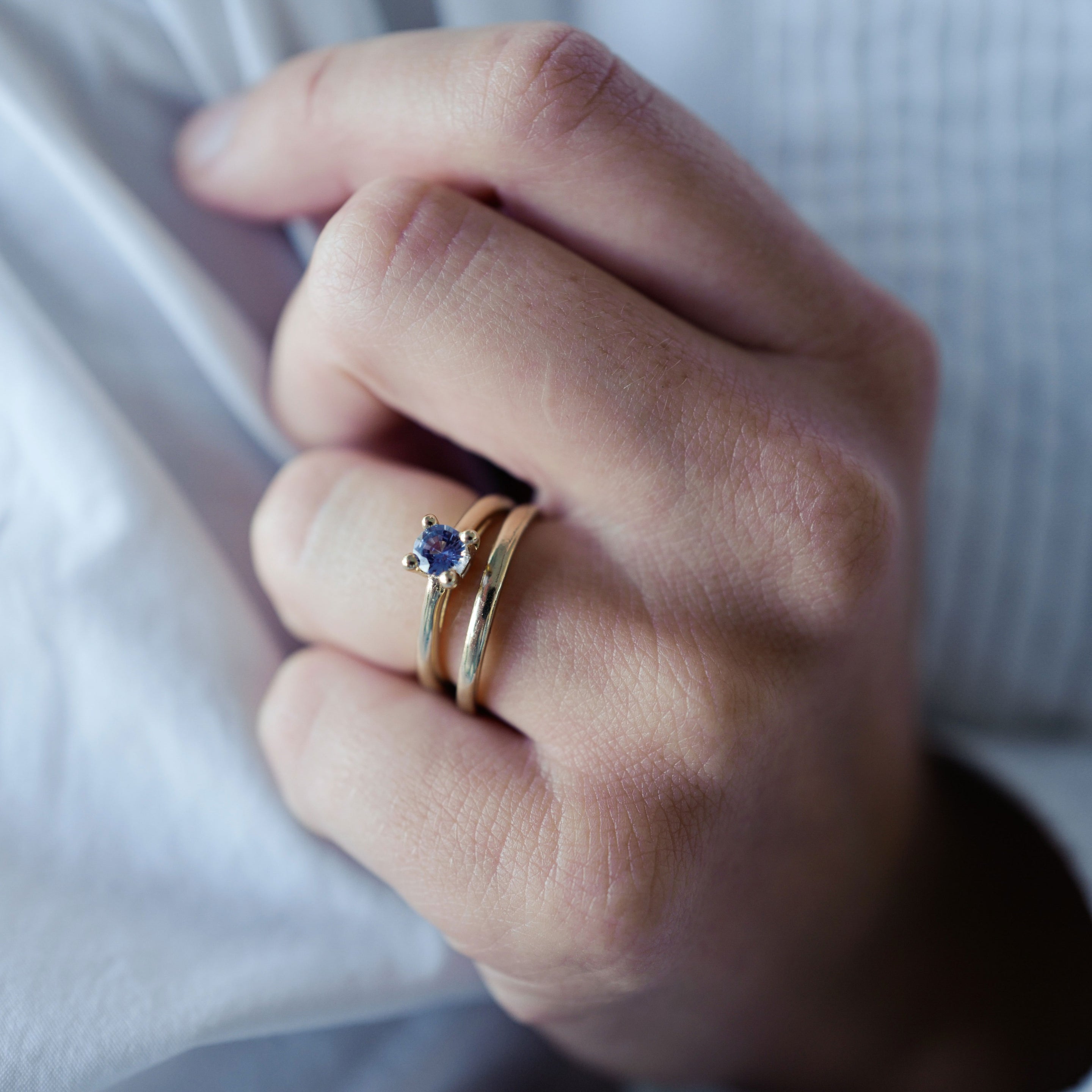 Made using 100% recycled solid 9ct yellow gold & set with a 0.63ct blue sapphire, this ring is a beautiful new addition to Daniella's wedding collection.