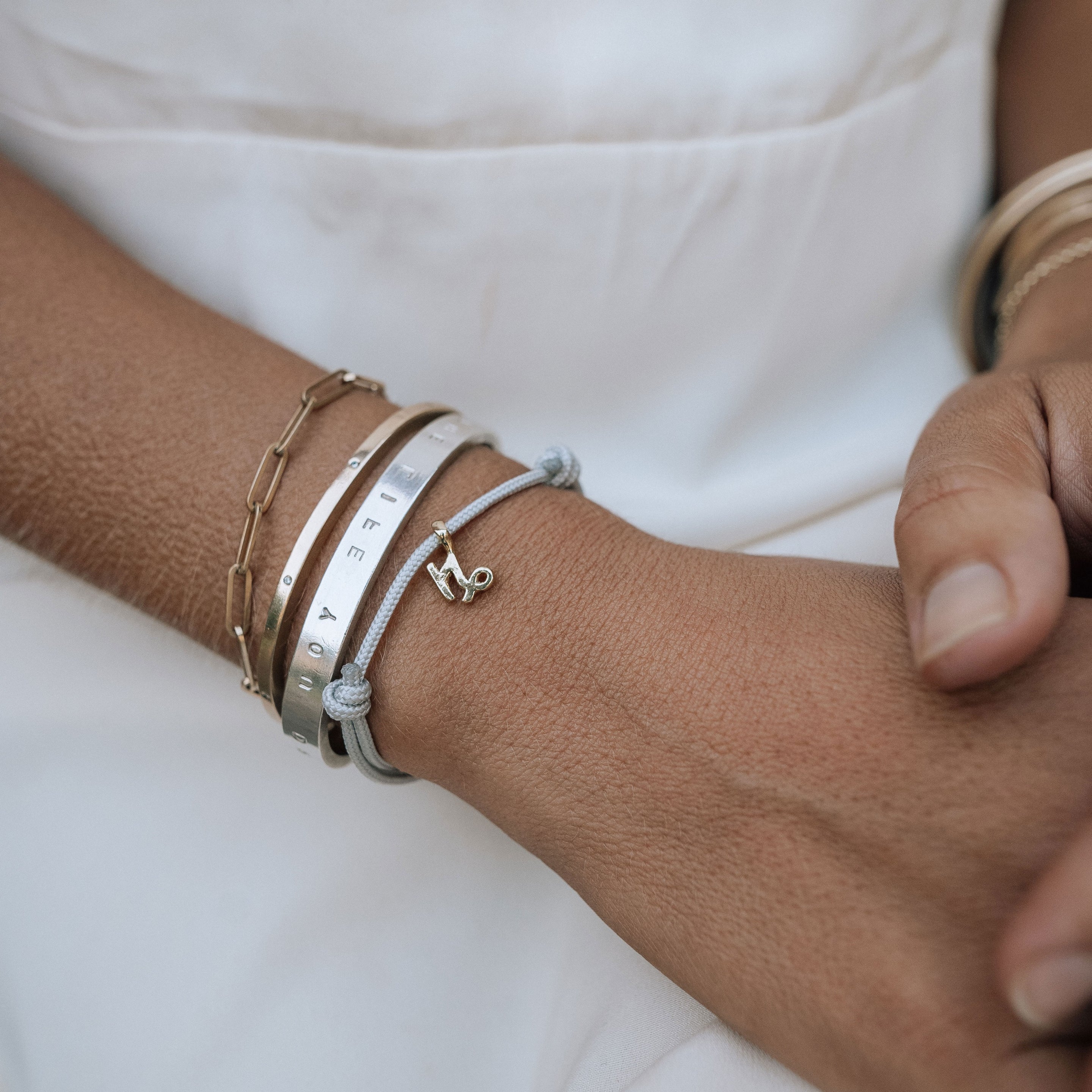 The Capricorn Mini Horoscope Charm, made using 100% recycled solid 9ct gold, is threaded onto an adjustable sailing rope. One of our most popular & easy to wear pieces, this sailing rope comes in three colours: black, pink or grey.