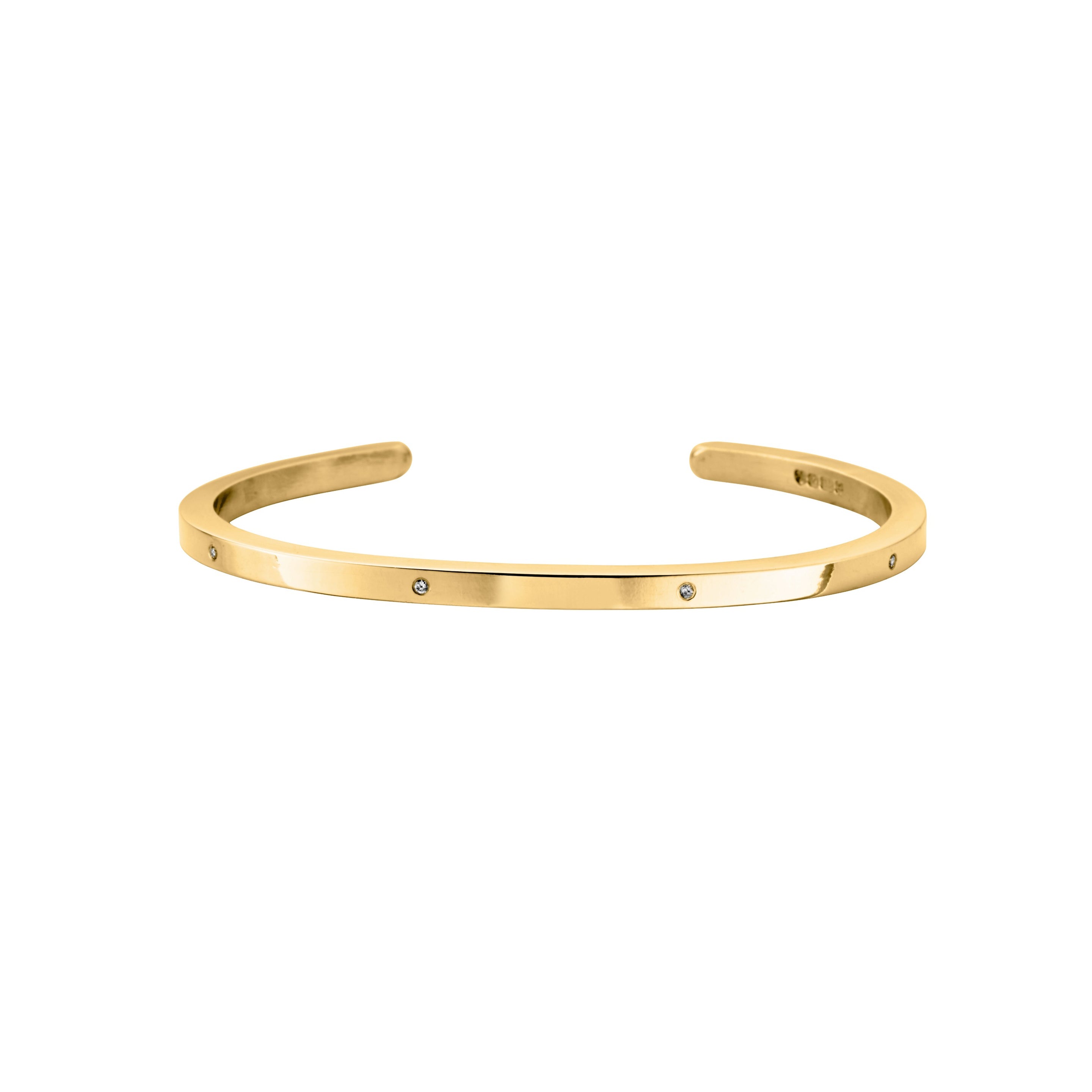 This beautiful cuff has been made using 100% recycled 9ct gold & set with 6 sparkly diamonds.