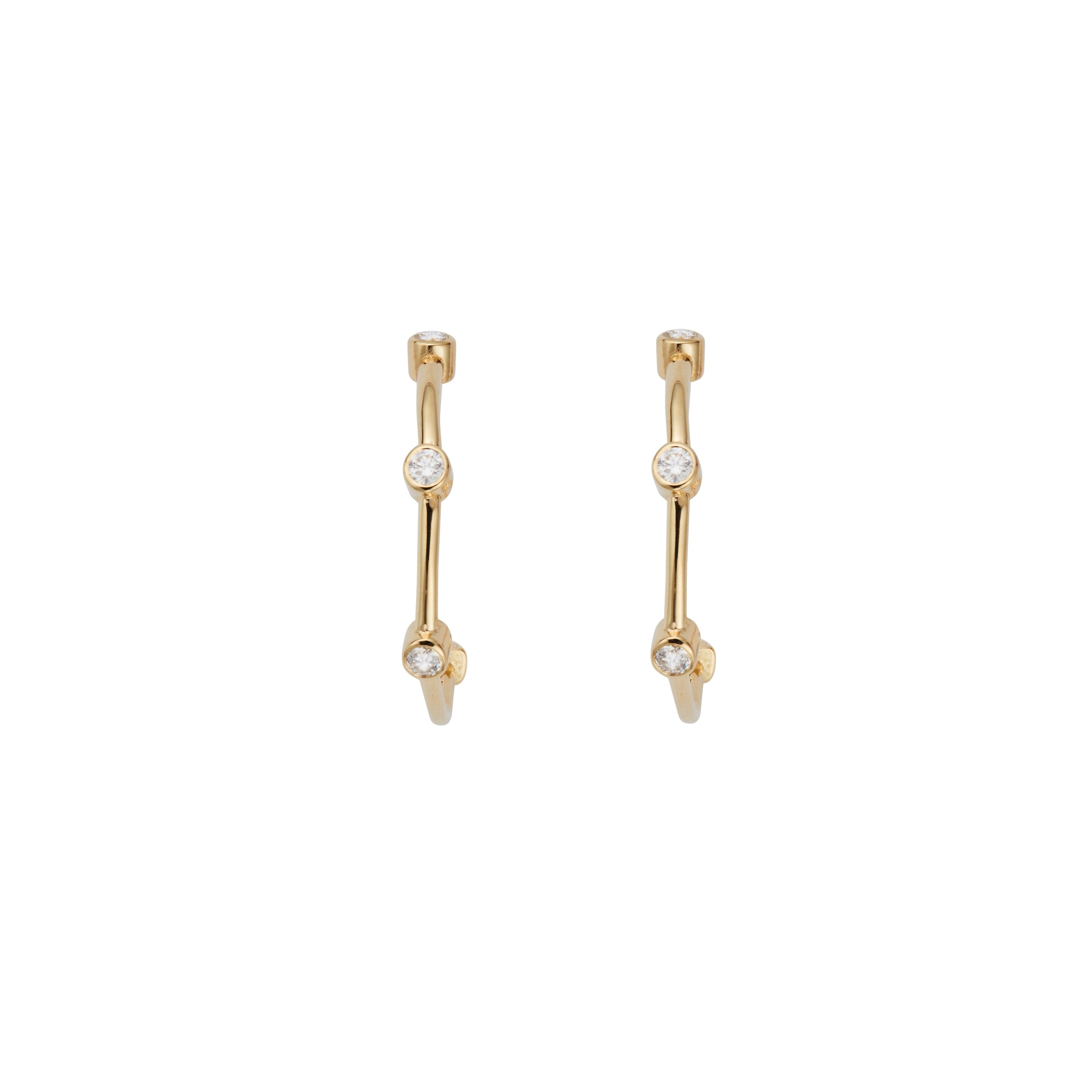 The beautiful Maxi Midnight Hoop Earrings are the latest addition to Daniella's collection. Made using 100% recycled 9ct yellow gold & set with three diamonds.