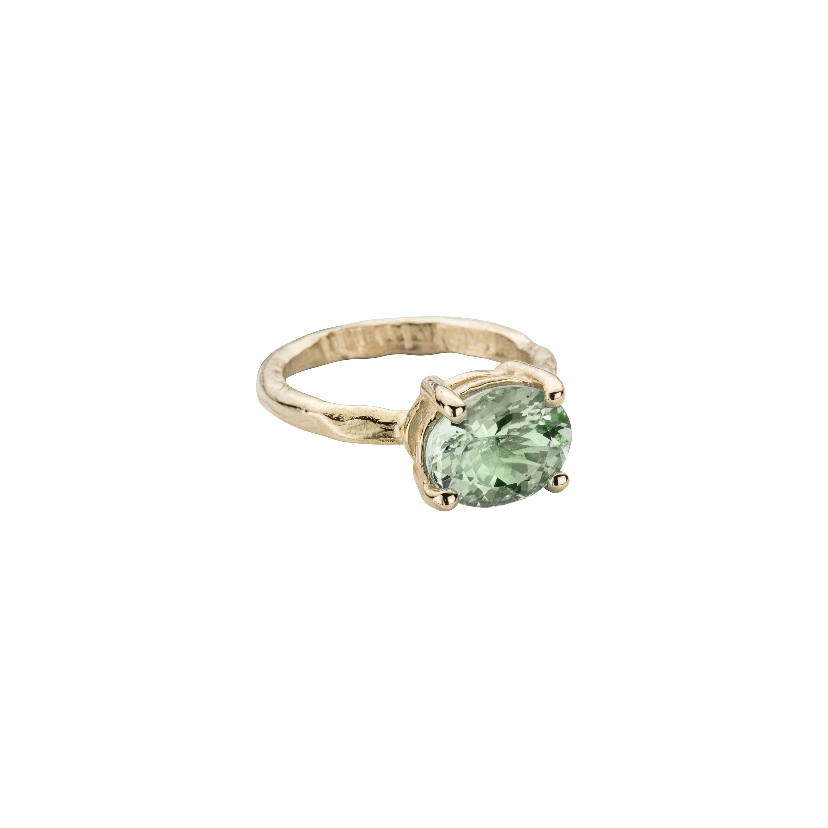 Handcrafted in England using 100% recycled 9ct yellow gold and set with a responsibly sourced green quartz stone by the esteemed British jewellery brand Daniella Draper. Cherished for its spiritual attributes, green quartz resonates with those seeking balance and rejuvenation. Perfect for stacking or wearing solo, this ring is versatile enough for both casual and special occasions.