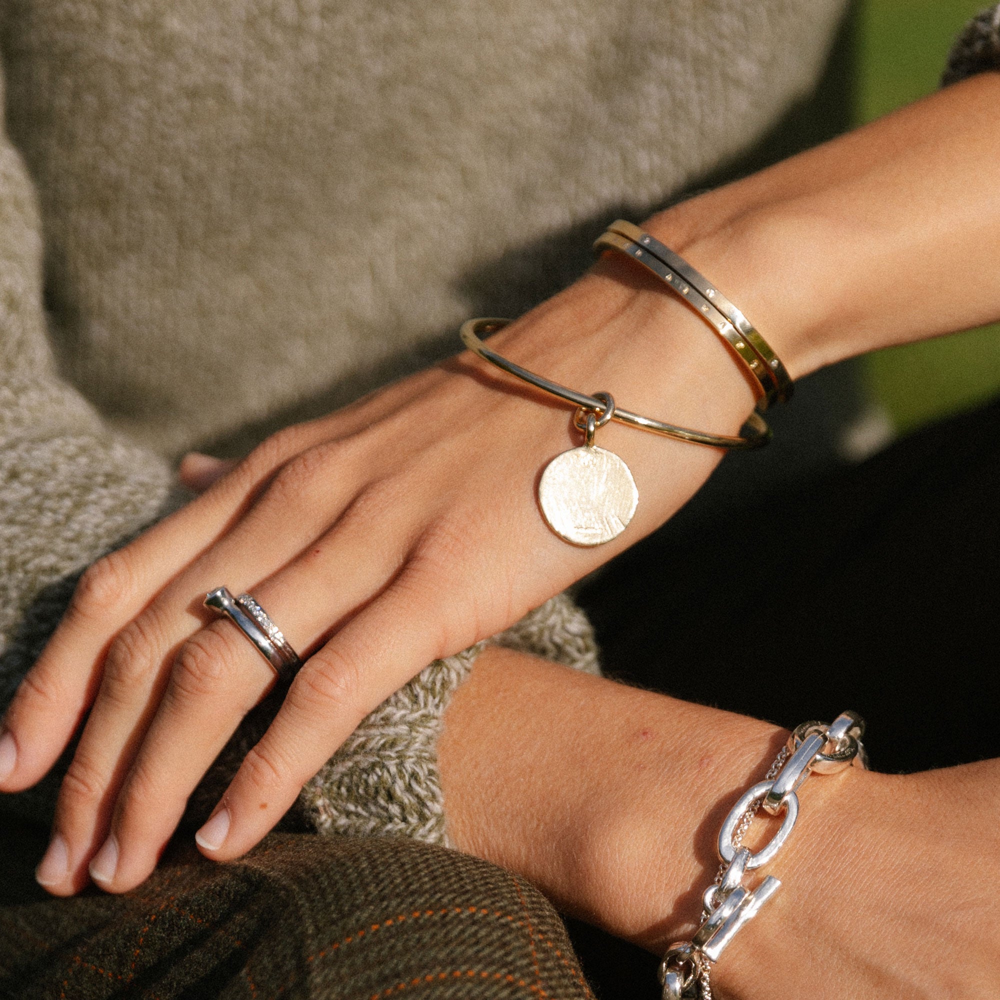 The Large Moon Bangle is made using 100% recycled solid 9ct yellow gold. Wear alone or stack with other DD bangles to create your own unique look!