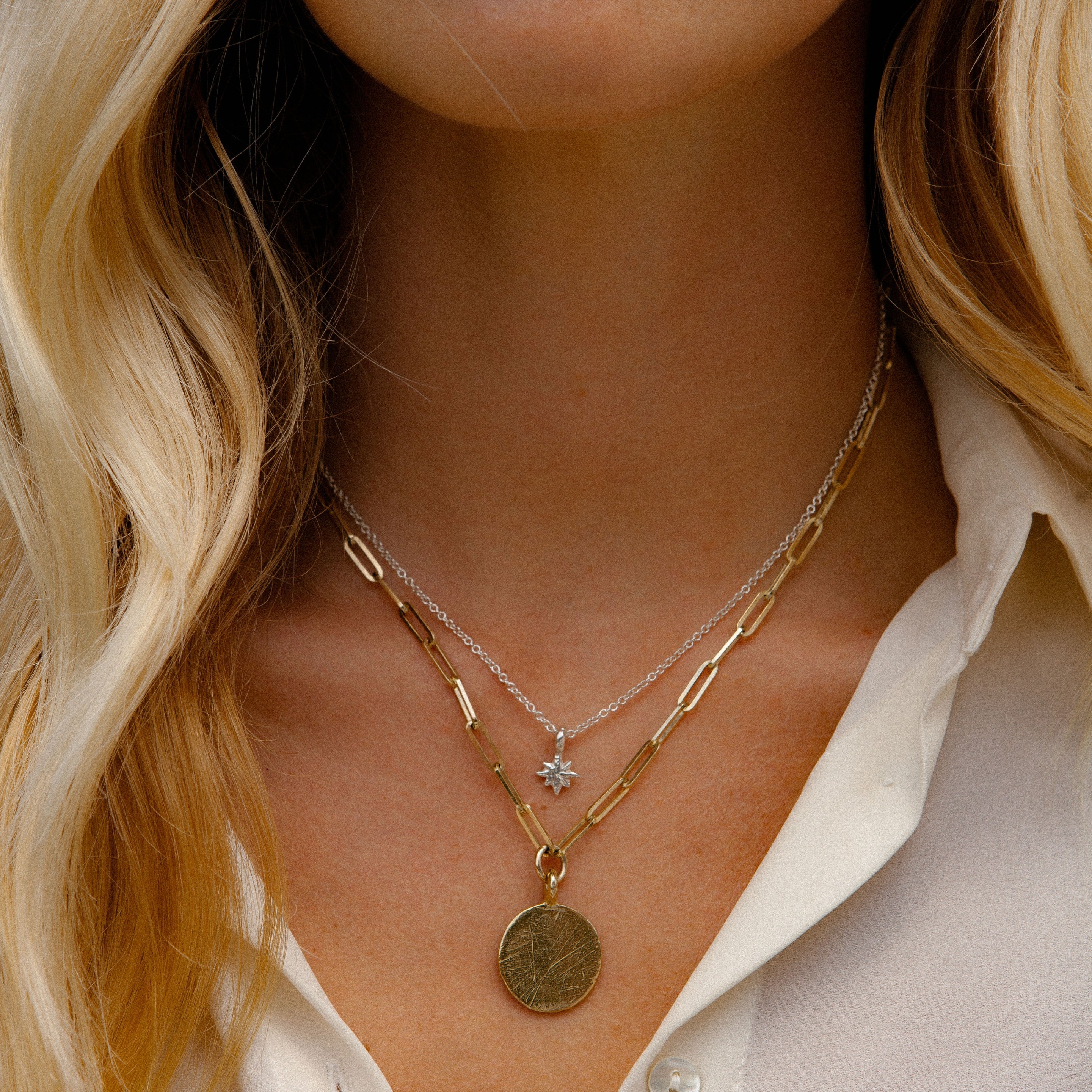 The Large Moon Trace Chain Necklace is made using 100% recycled solid 9ct yellow gold. The Trace Chain looks great worn alone or layered with other DD necklaces to create your own unique look!