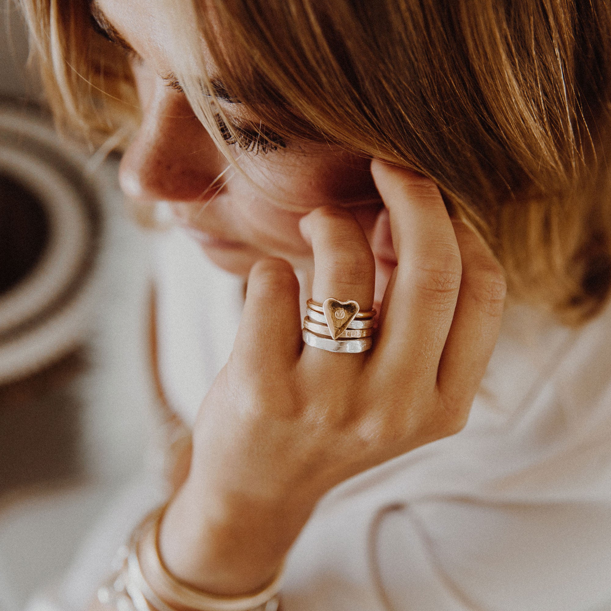 The Love Struck Mini Heart Ring is made using 100% recycled solid 9ct yellow gold. Wear alone or stack with other DD rings to create your own unique look!