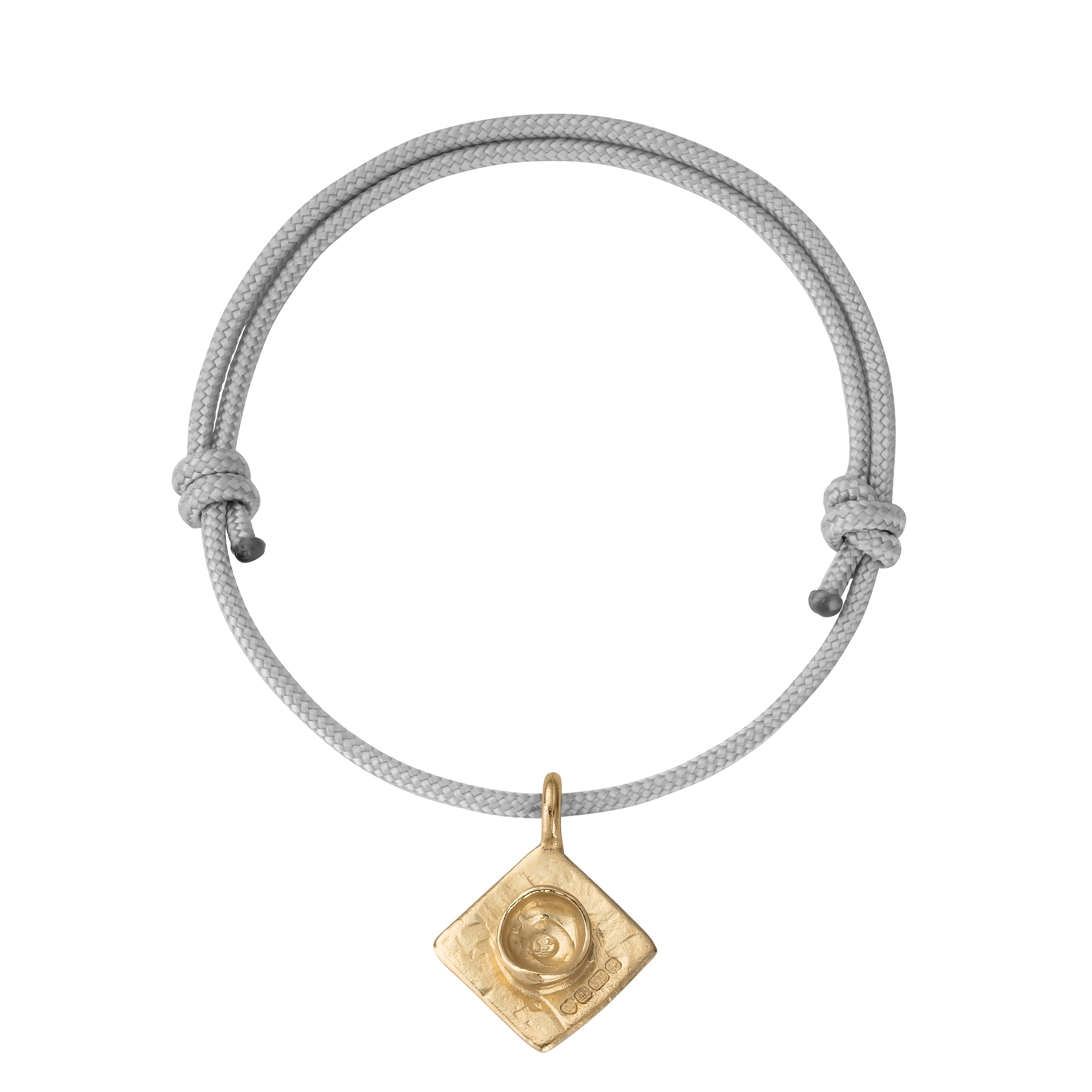 The Graduation Cap, made using 100% recycled solid 9ct Gold, is threaded onto an adjustable sailing rope. One of our most popular & easy to wear pieces, this sailing rope comes in three colours: black, pink or grey.