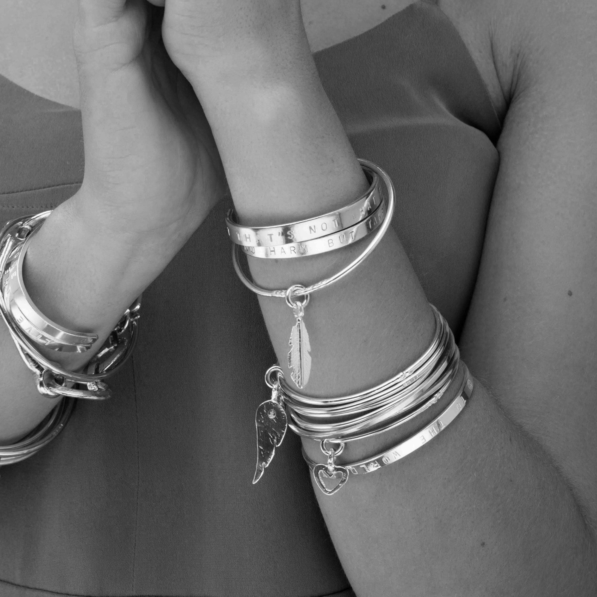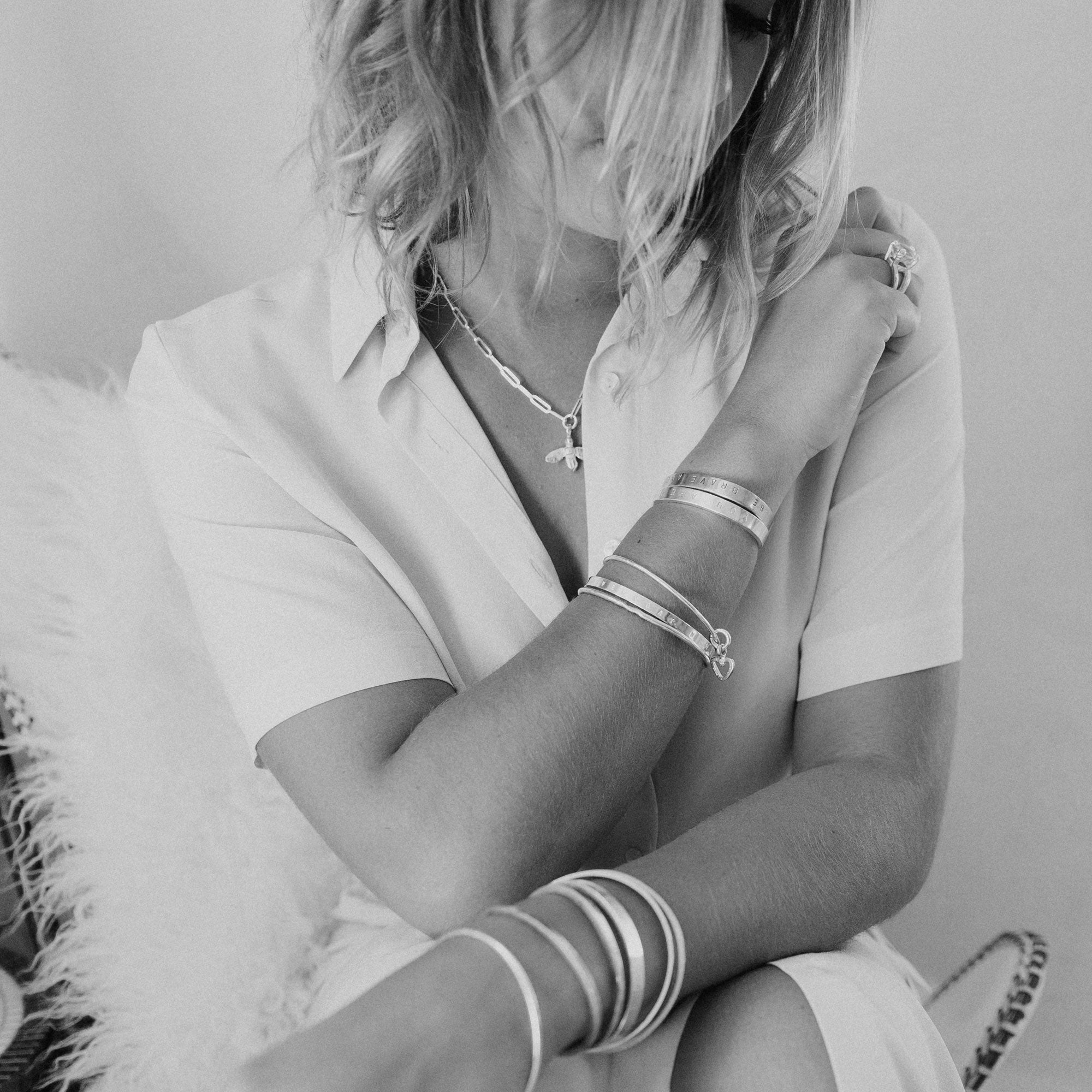 The Mini Open Heart Bangle is made using 100% recycled solid 9ct yellow gold. Wear alone or stack with other DD bangles to create your own unique look!