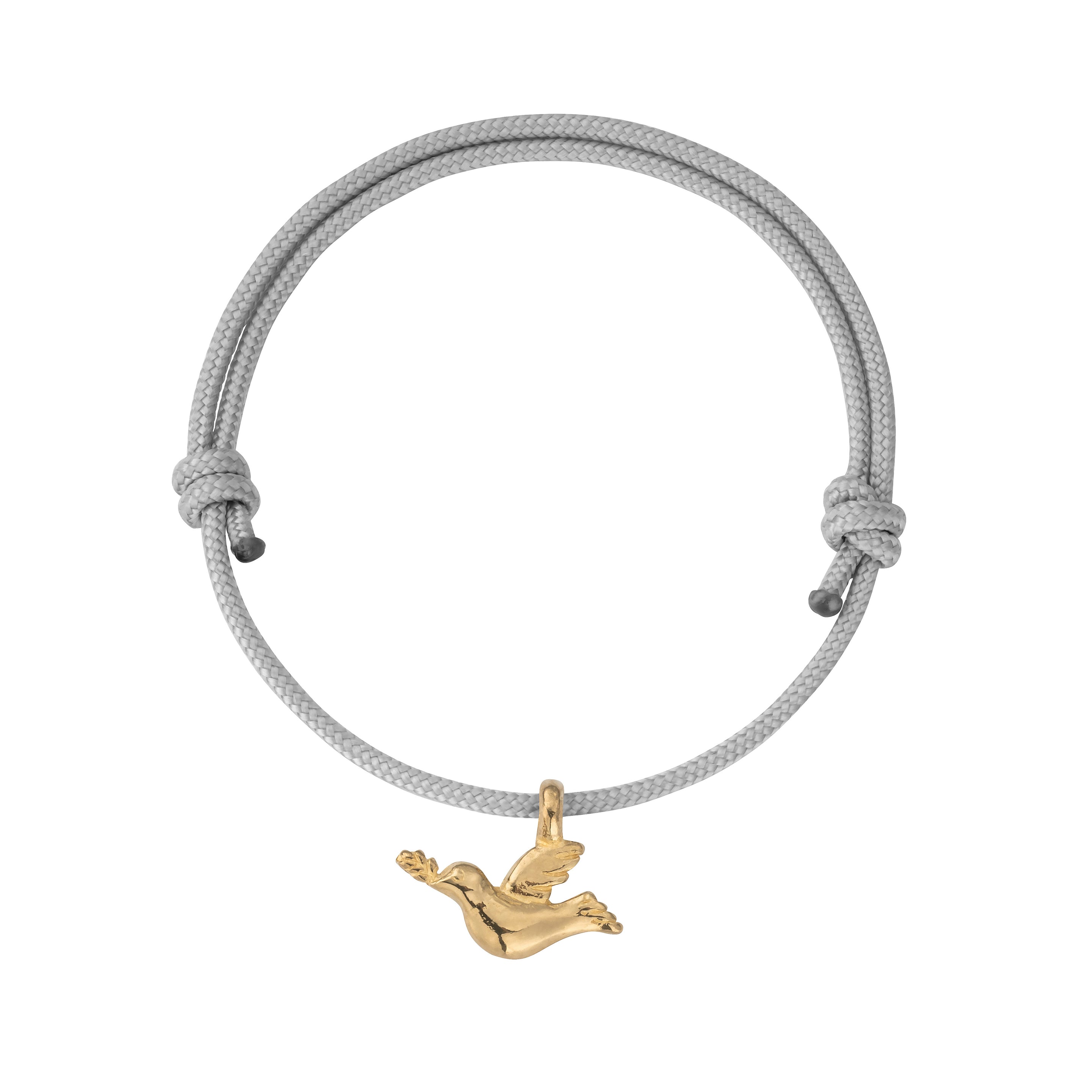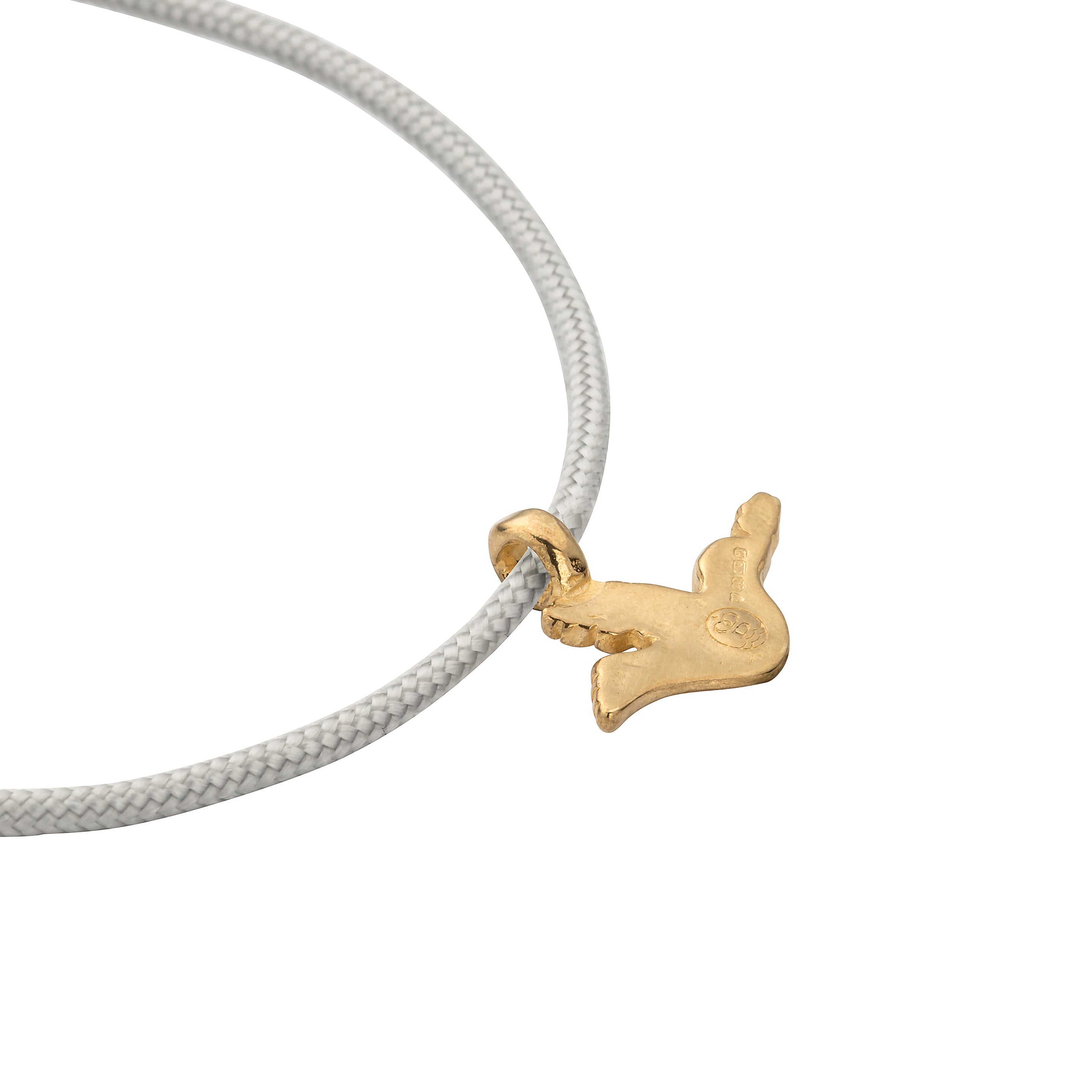 The Mini Turtle Dove, made using 100% recycled solid 9ct yellow gold, is threaded onto an adjustable sailing rope. One of our most popular & easy to wear pieces, this sailing rope comes in three colours: black, pink or grey.