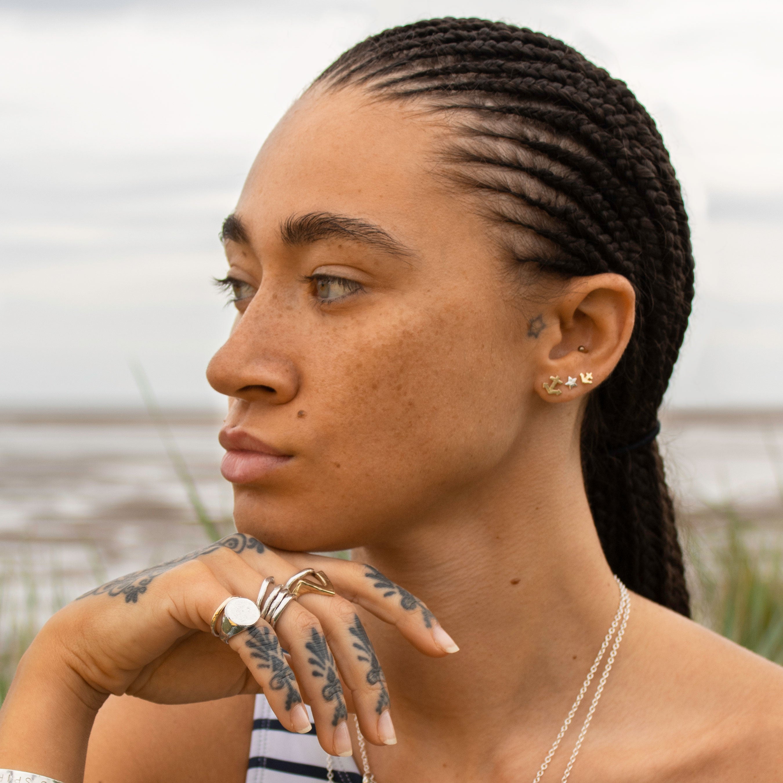 All our jewellery uses 100% recycled solid gold and silver as we work to preserve and protect our planet.
