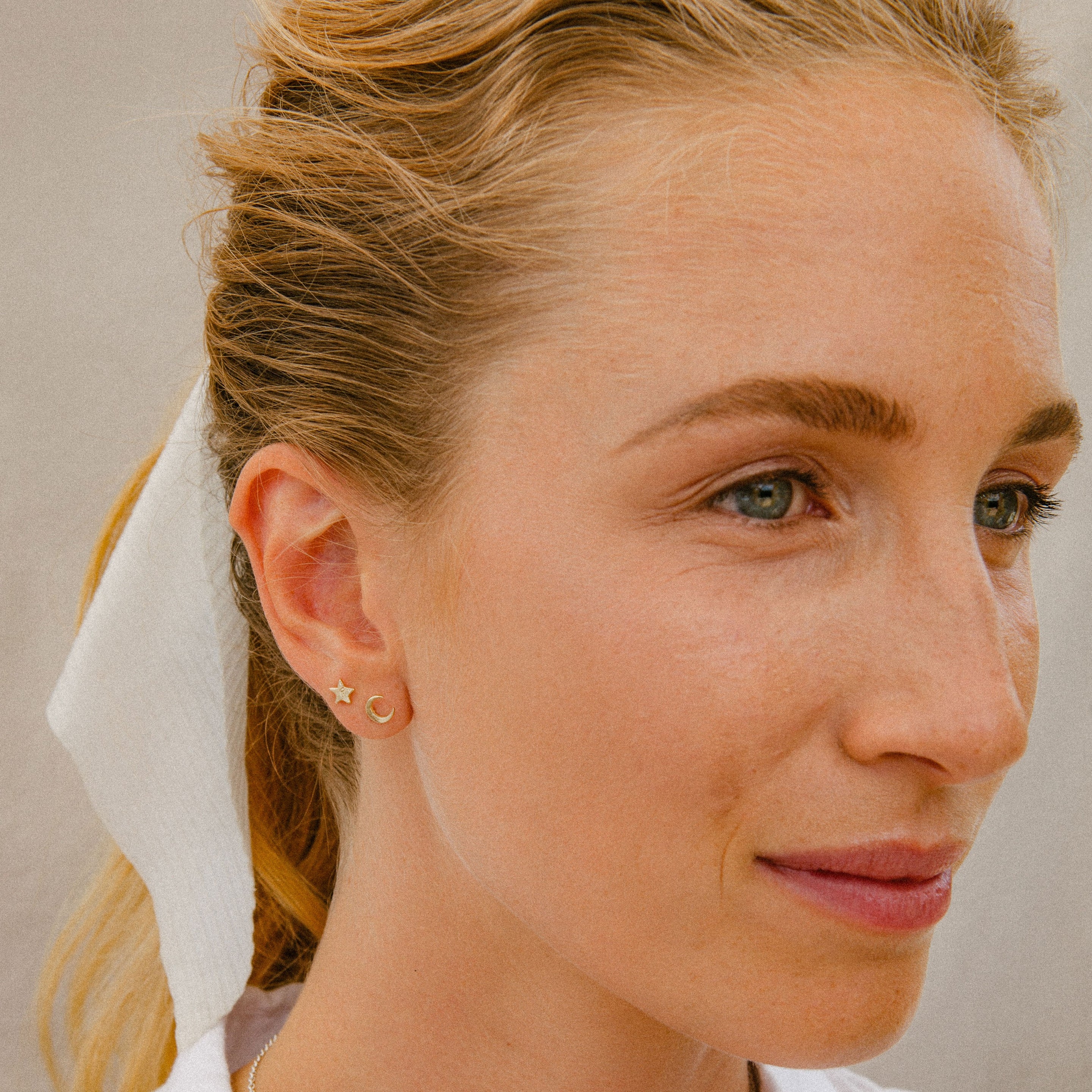 Mix and match these beautifully dainty ear charm studs to create your own unique collection! Choose from the tiny star, peace sign, anchor or our new design; the moon. All available in 100% recycled solid sterling silver or 9ct yellow gold.