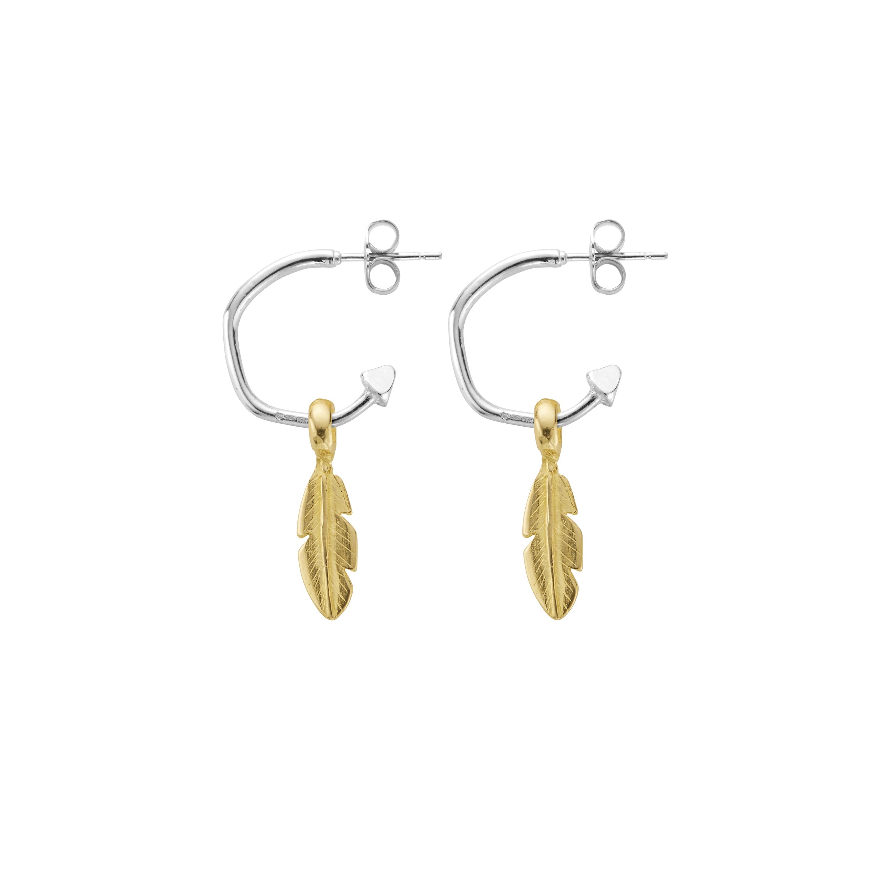 The Mini Feather Cupid Hoops are made using 100% recycled solid sterling silver & 9ct yellow gold. They will make the perfect finishing touch for any occasion.