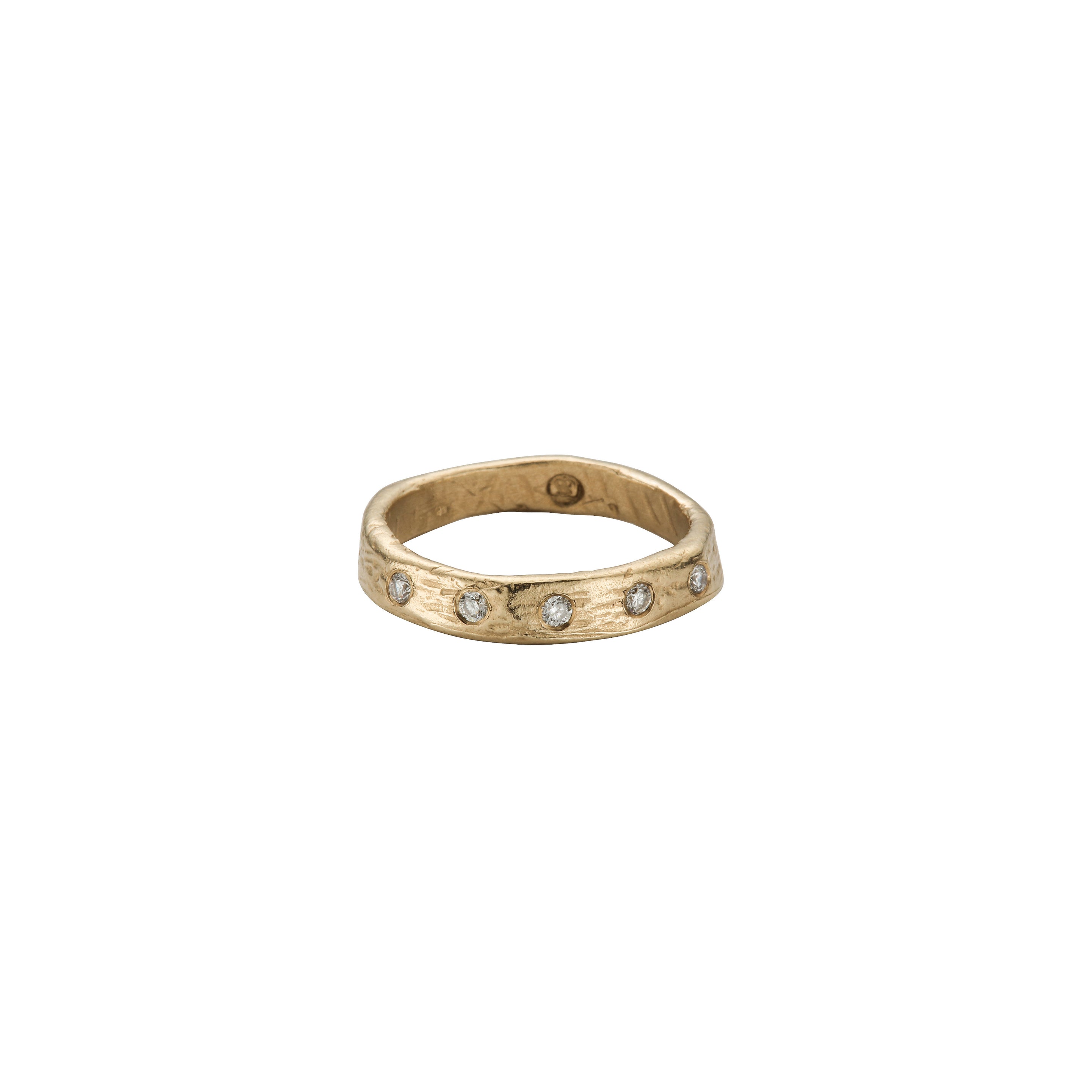 The Diamond Midi Posey Ring is made using 100% recycled solid 9ct yellow gold & set with five sparkly diamonds. Wear alone or stack with other DD rings to create your own unique look!
