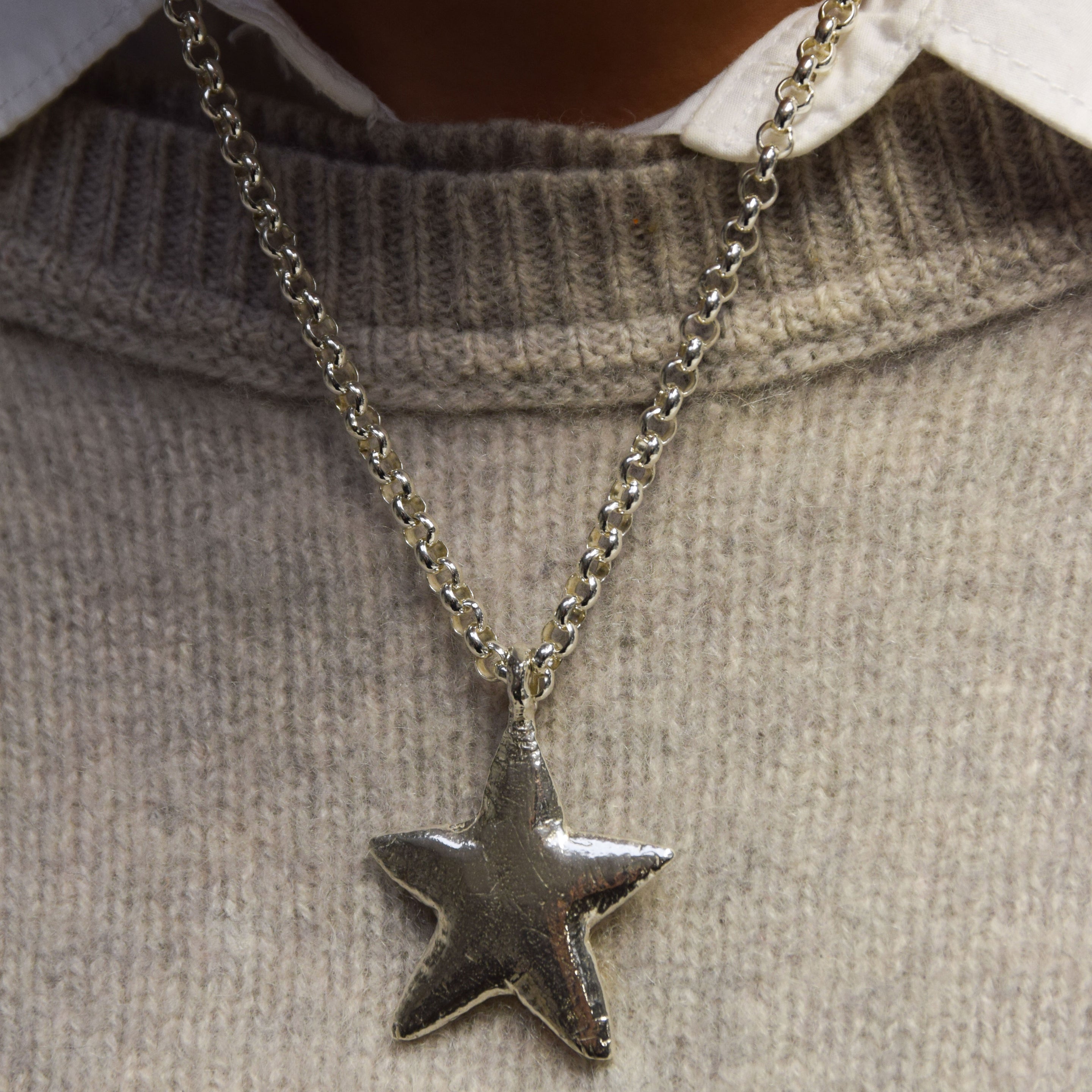 This is a solid Sterling Silver Maxi 18" chain with an original Maxi Star charm. This is a statement necklace, boasting a generous size charm that would make a thoughtful gift for a special occasion. Wonderfully elegant this piece makes a versatile addition to your jewellery box that can be worn casually or beautifully dressed up.