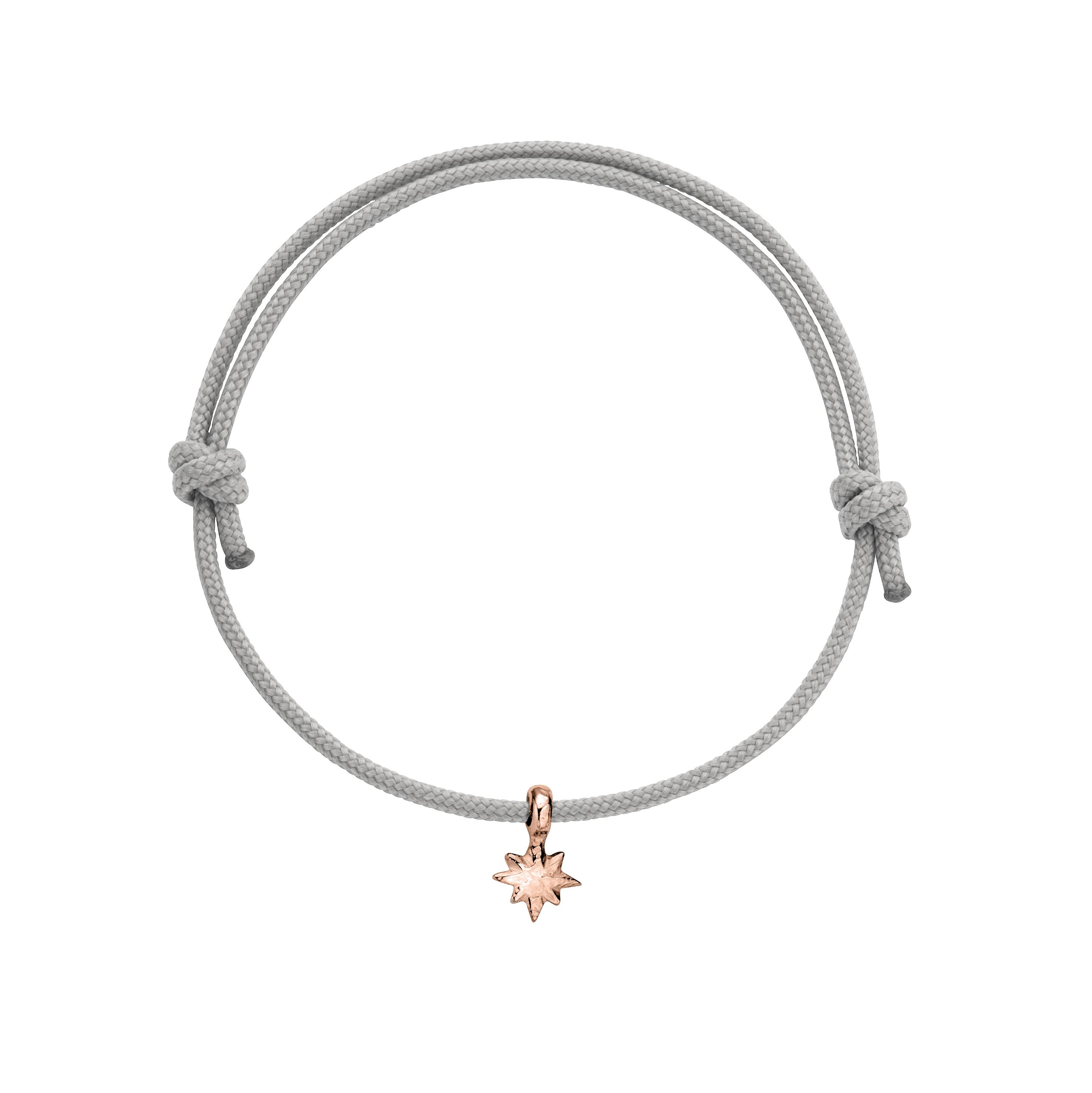 The Baby North Star, made using 100% recycled solid 9ct rose gold, is threaded onto an adjustable sailing rope. One of our most popular & easy to wear pieces, this sailing rope comes in three colours: black, pink or grey.