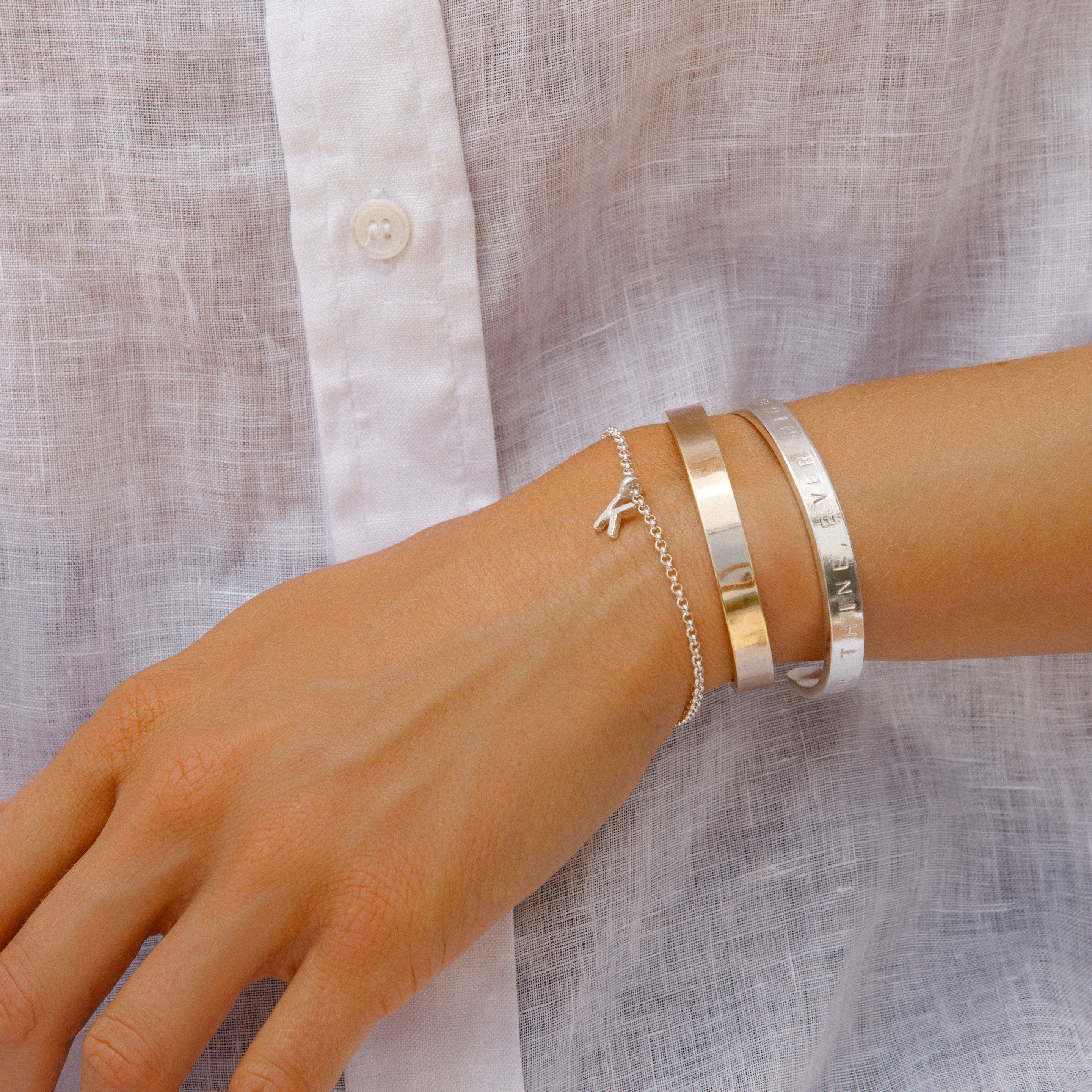 The Alphabet Collection is designed to be playful yet classic, and is made using 100% recycled solid sterling silver. Wear alone or stack with other DD bangles to create your own unique look!