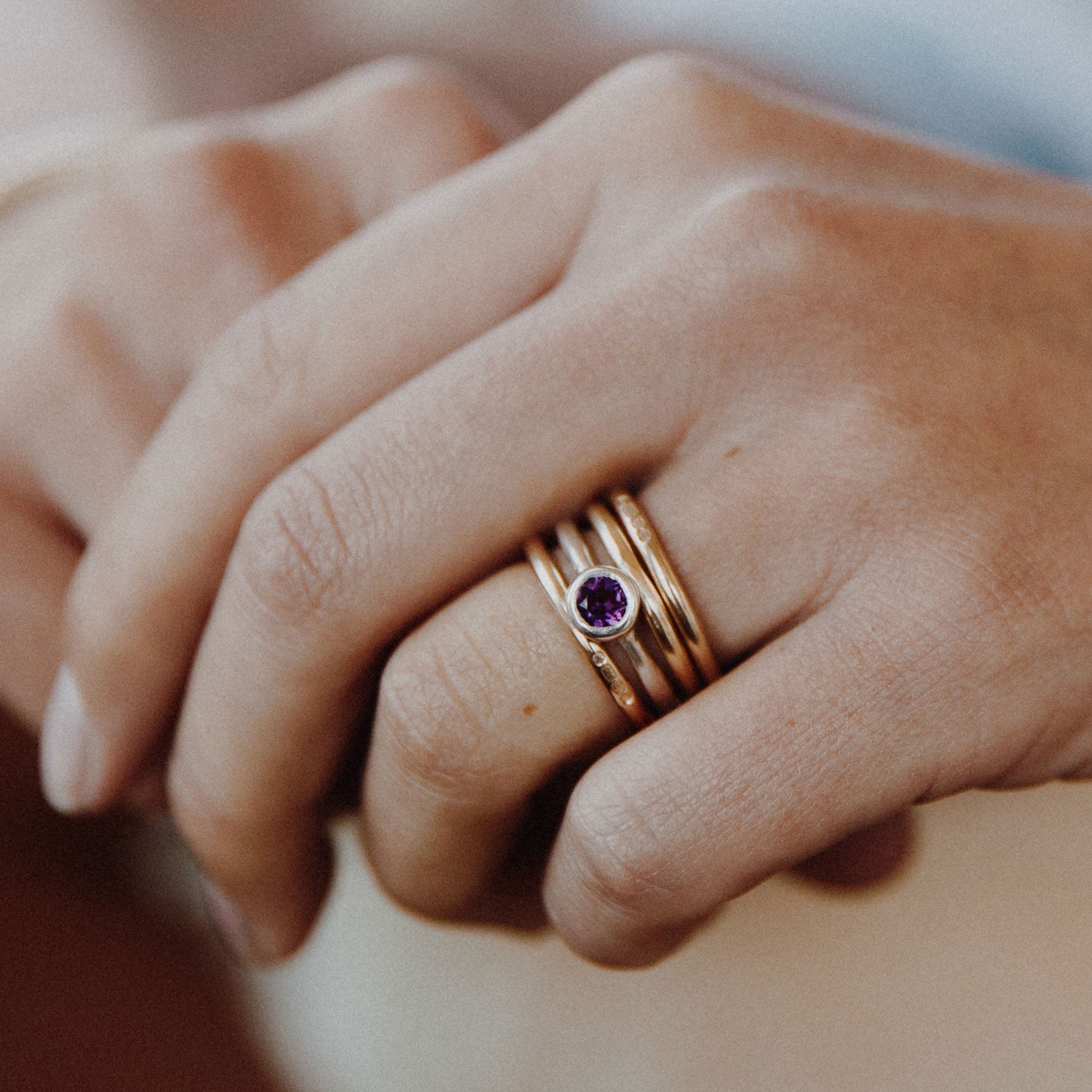 Handcrafted in England using 100% recycled sterling silver and set with a responsibly sourced amethyst stone by the esteemed British jewellery brand Daniella Draper. Known for its regal purple hue, amethyst is a symbol of clarity, inner strength and tranquillity. Perfect for stacking or wearing solo, this ring is versatile enough for both casual and special occasions.