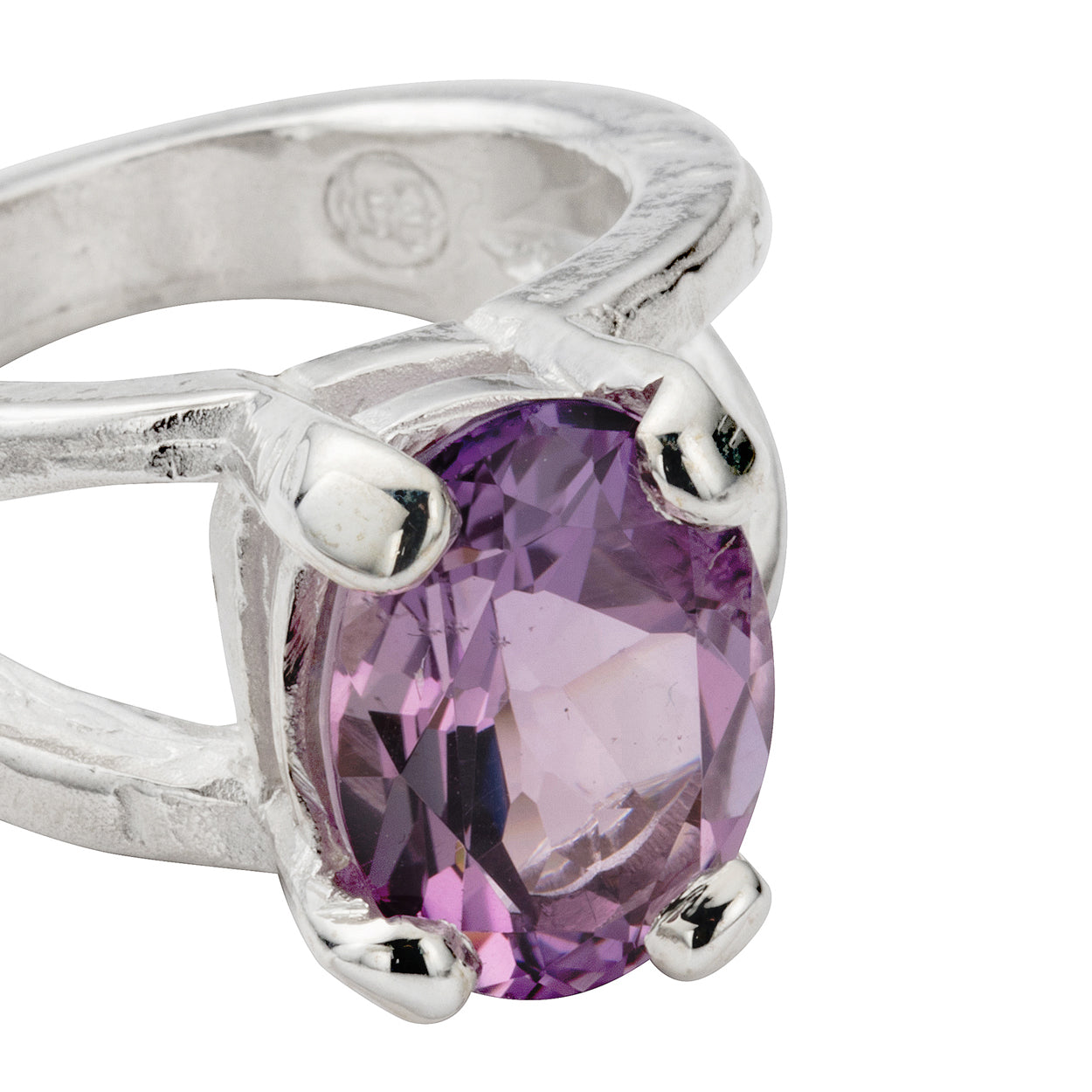 Handcrafted in England using 100% recycled sterling silver and set with a responsibly sourced amethyst stone by the esteemed British jewellery brand Daniella Draper. Believed to promote calmness and clarity, amethyst resonates with those seeking balance and serenity. Let the exquisite stone and the bold Maxi Claw design reflect your confidence and individuality.