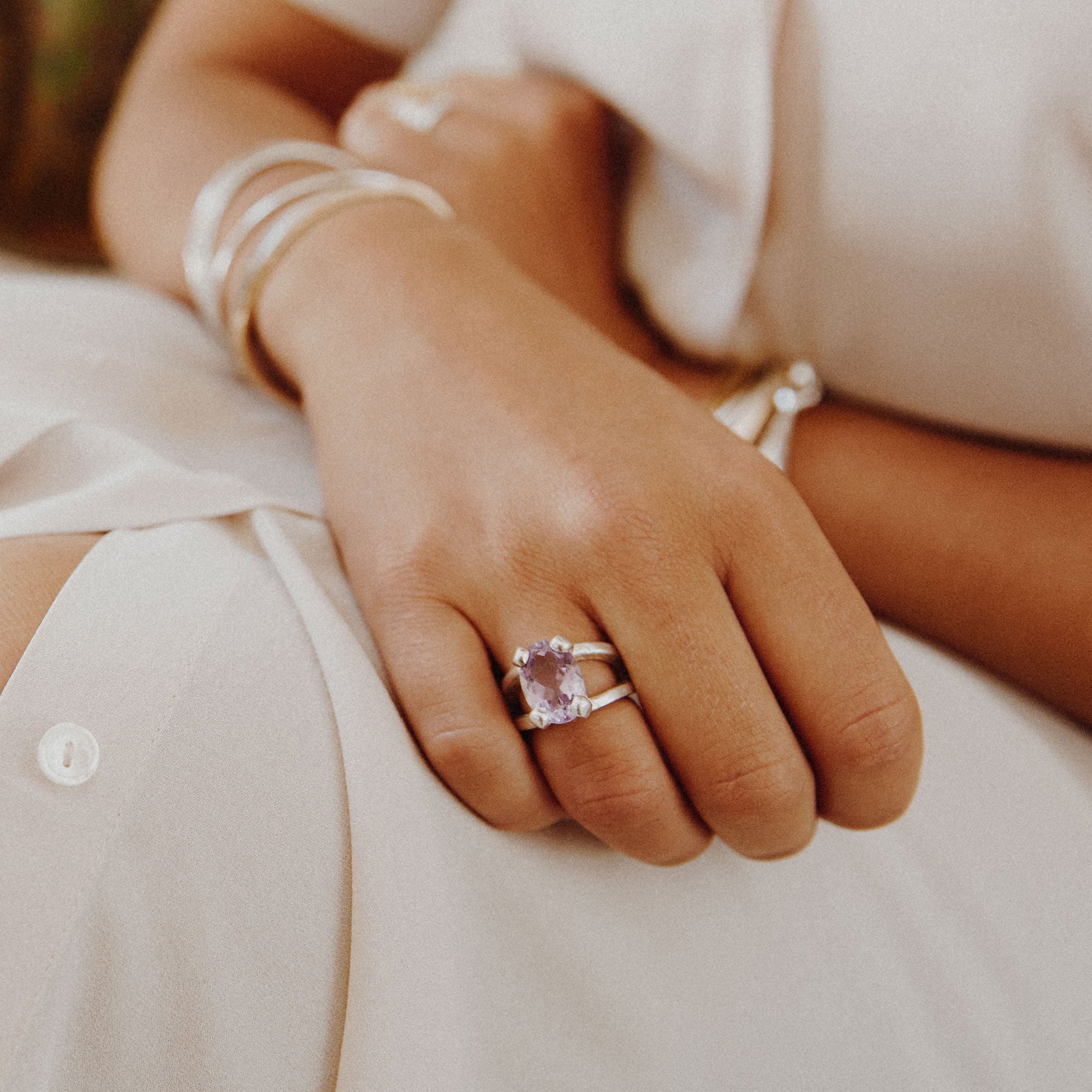 The Silver Amethyst Maxi Claw Ring carries the energy of balance and intuition, making it a meaningful addition to your collection. Wear it as an embodiment of your personal style or as a symbol of spiritual growth.