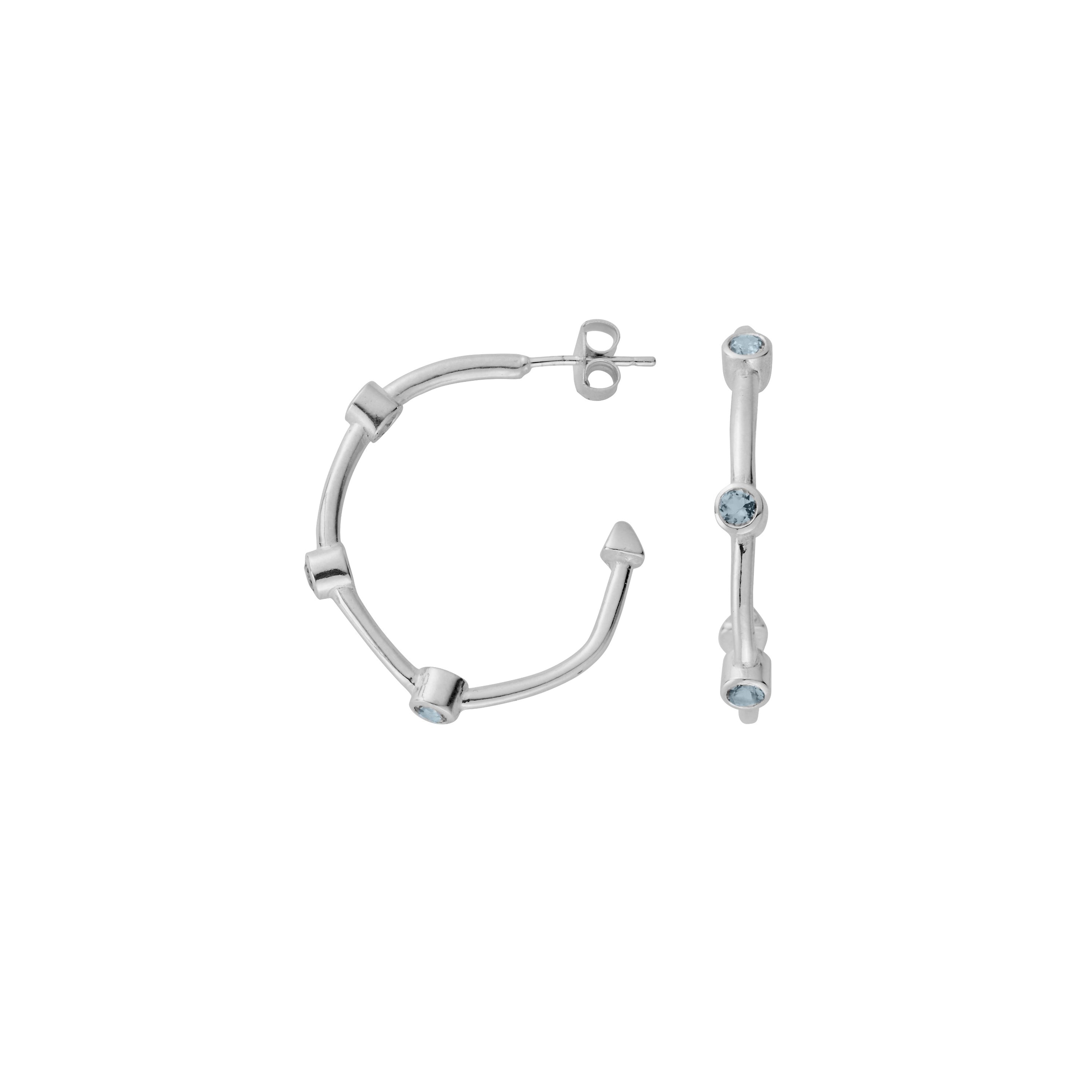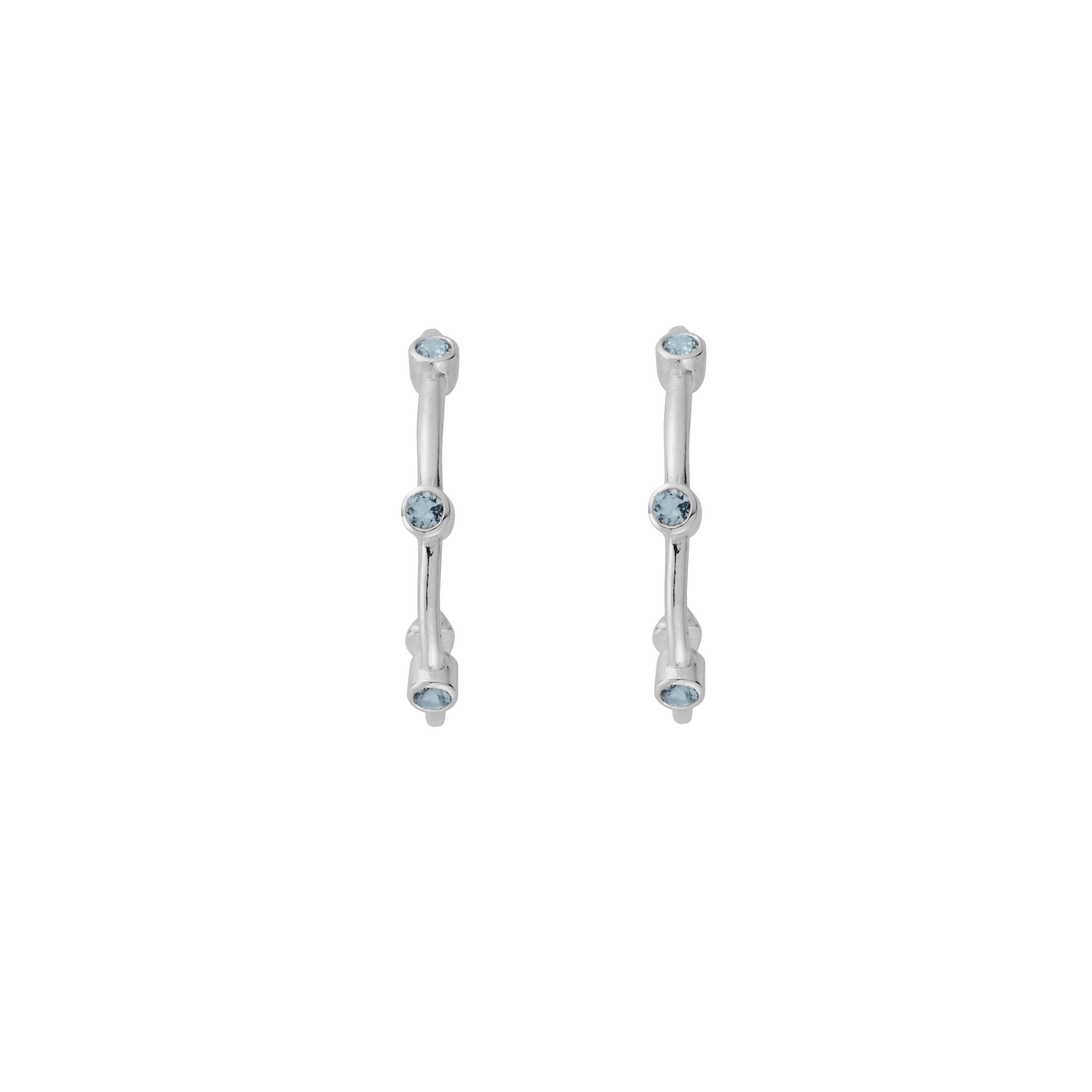 The beautiful Maxi Midnight Hoop Earrings are the latest addition to Daniella's collection. Made using 100% recycled silver & set with three aquamarines.