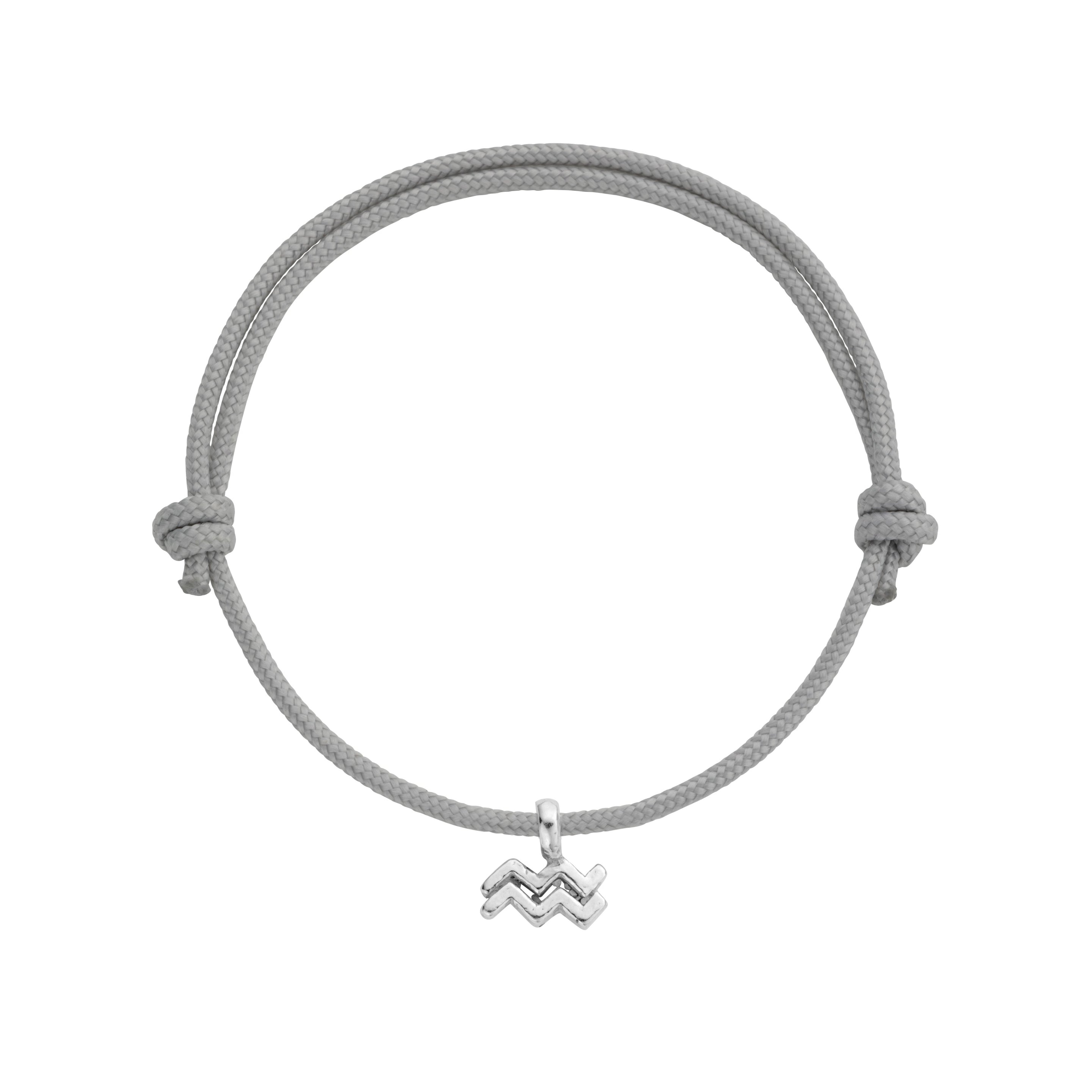 The Aquarius Mini Horoscope Charm, made using 100% recycled solid sterling silver, is threaded onto an adjustable sailing rope. One of our most popular & easy to wear pieces, this sailing rope comes in three colours: black, pink or grey.