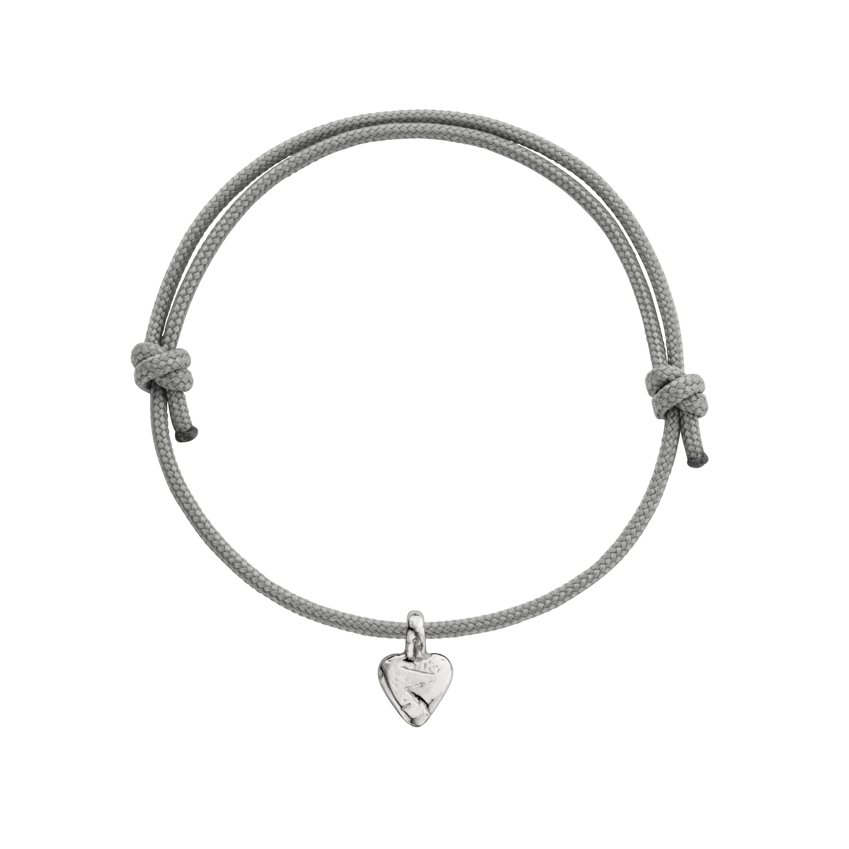 The Baby Heart, made using 100% recycled solid sterling silver, is threaded onto an adjustable sailing rope. One of our most popular & easy to wear pieces, this sailing rope comes in three colours: black, pink or grey.
