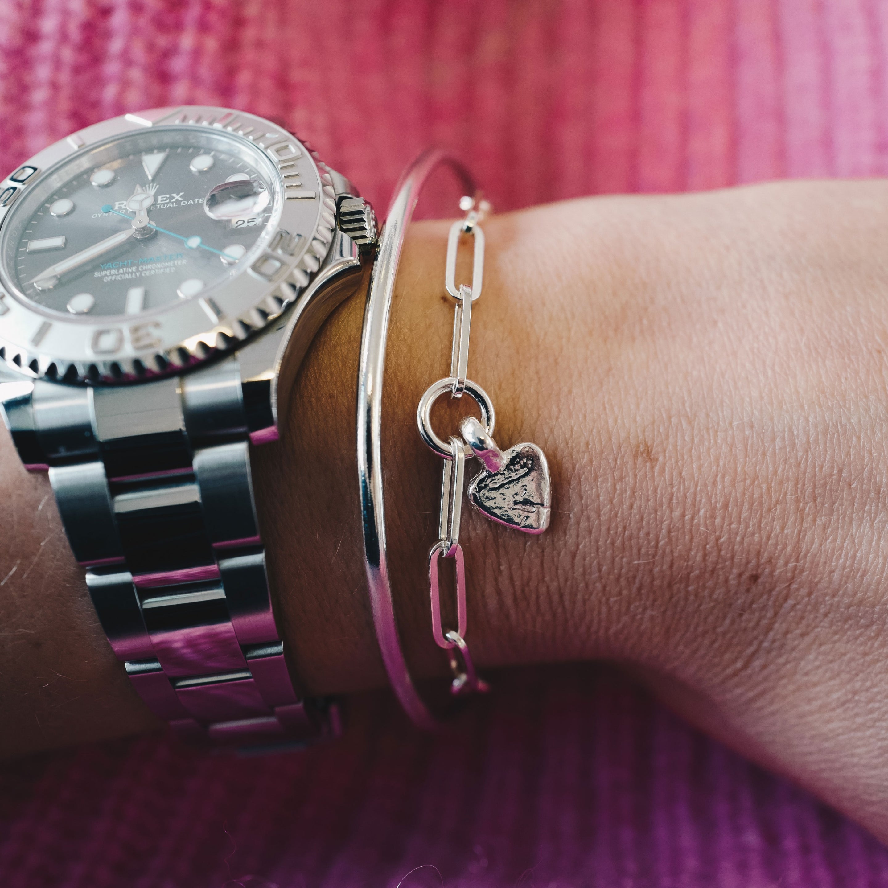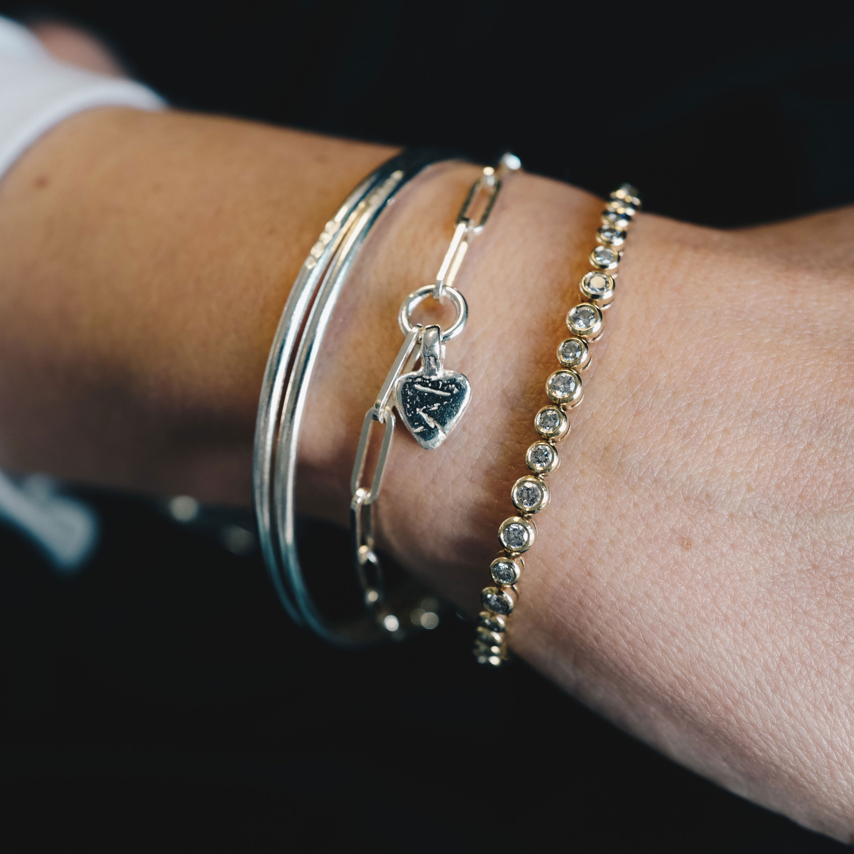 The Baby Heart Trace Chain Bracelet is made using 100% recycled solid sterling silver. Wear alone or stack with other DD bangles & bracelets to create your own unique look!