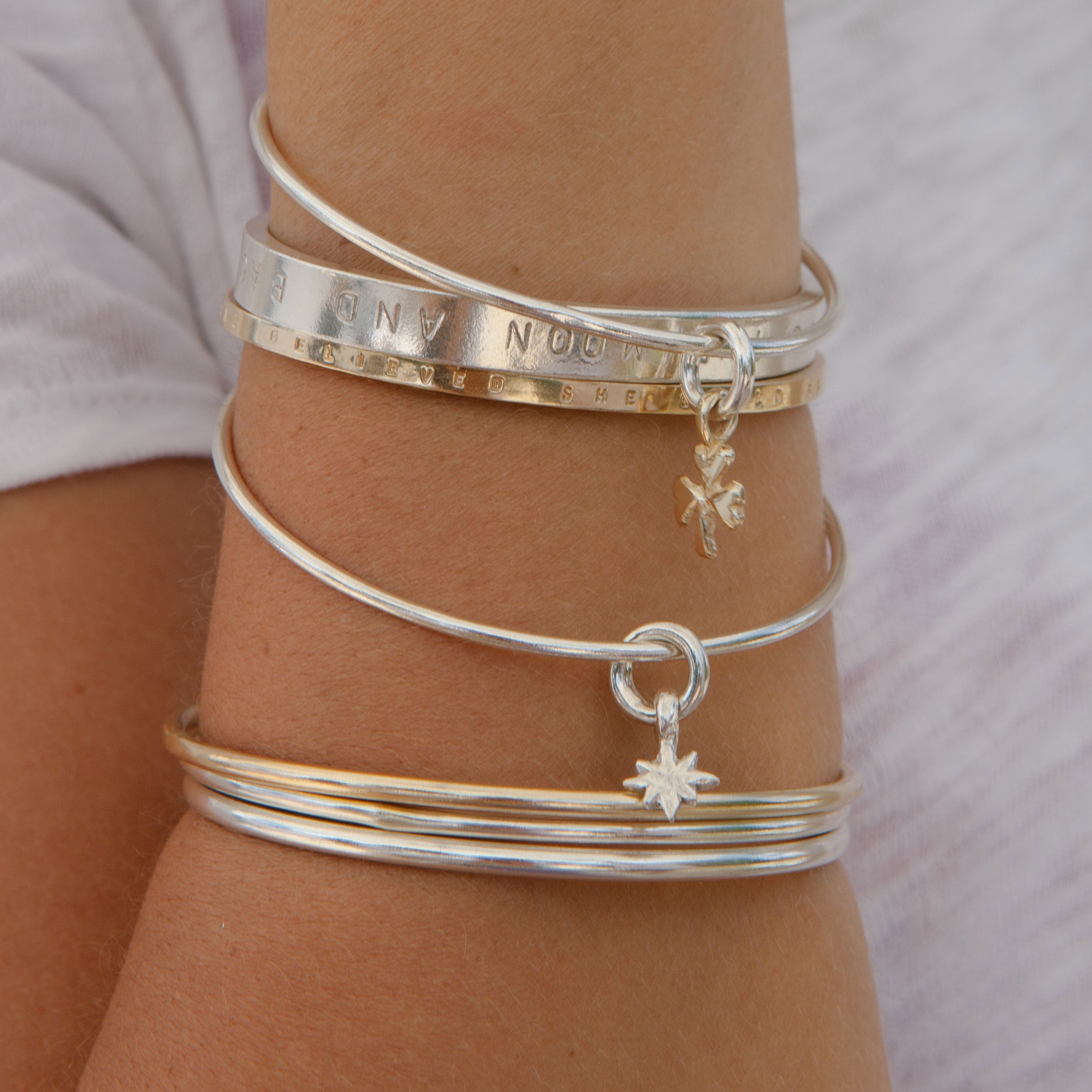 The Baby North Star Bangle is made using 100% recycled solid sterling silver. Wear alone or stack with other DD bangles to create your own unique look!