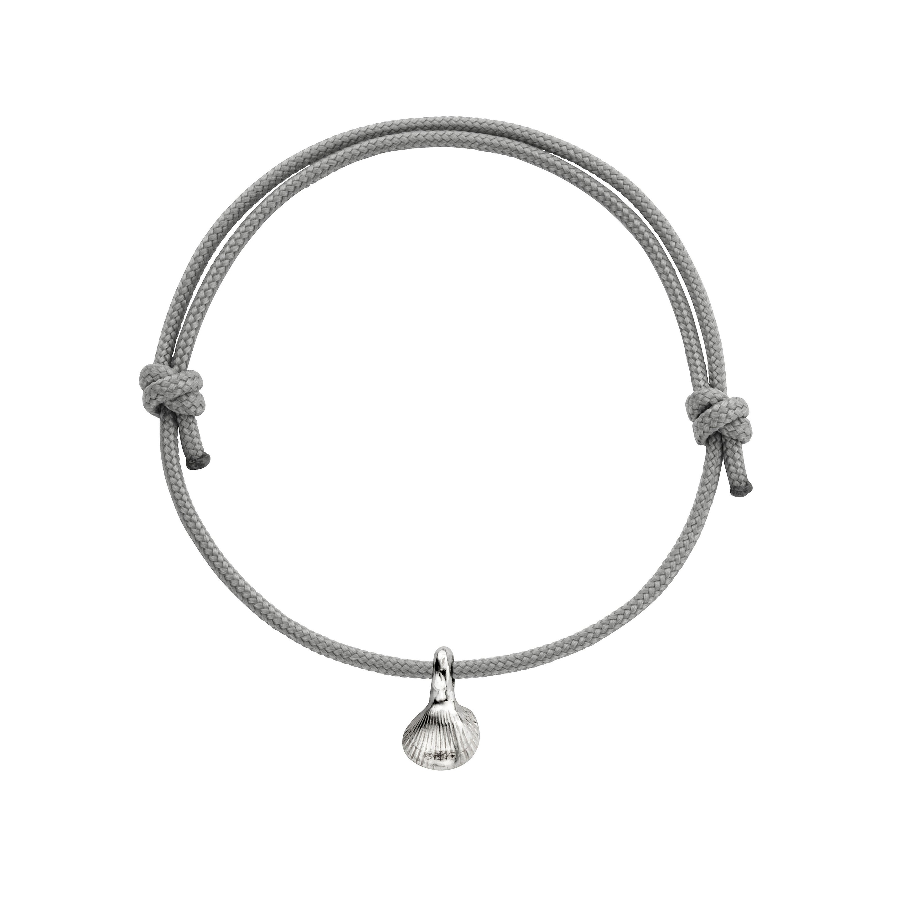 This is a solid sterling silver Baby Shell Charm threaded onto an adjustable Sailing Rope bracelet, tied by a slip knot. One of our most popular and easy to wear pieces, this sailing rope comes in various colours: blue, black, or grey. Cast from a genuine Cleethorpes cockle shell, this beautiful charm is a loving and familiar reminder of Daniella’s hometown & connection to the seaside. This bracelet can be worn alone or with a combination of bangles from the Daniella Draper range.