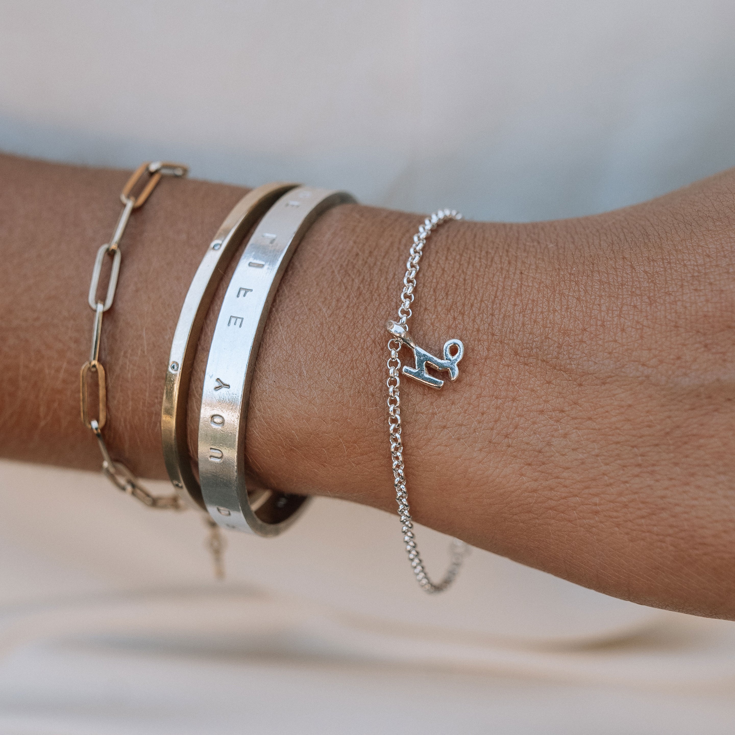 The Silver Capricorn Mini Horoscope Chain Bracelet is made using 100% recycled solid sterling silver. Wear alone or layer with other DD bangles to create your own unique look!