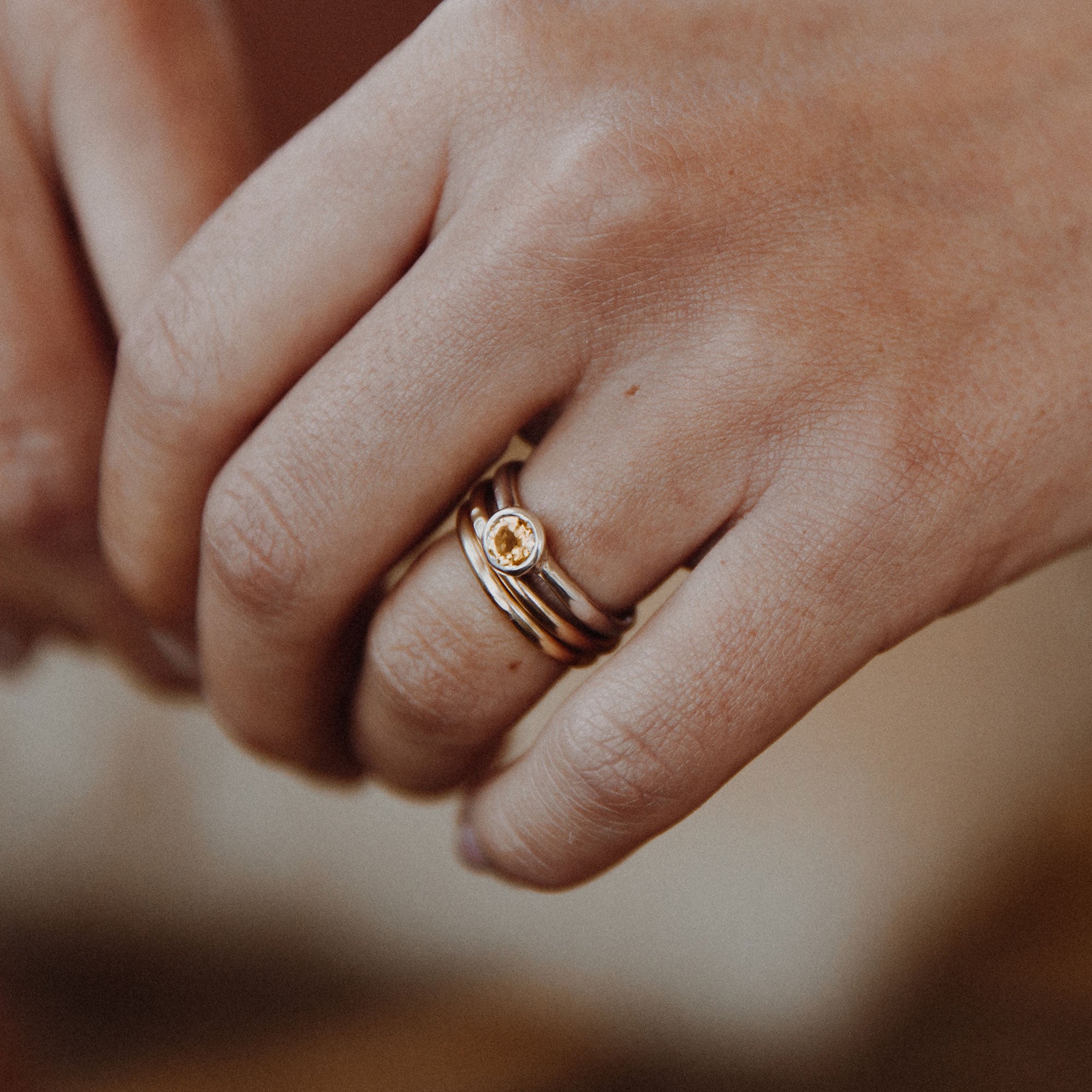Handcrafted in England using 100% recycled sterling silver and set with a responsibly sourced citrine stone by the esteemed British jewellery brand Daniella Draper. Its sunny hue adds a touch of vibrant allure to your collection, brightening the lives of those who wear it. Perfect for stacking or wearing solo, this ring is versatile enough for both casual and special occasions.