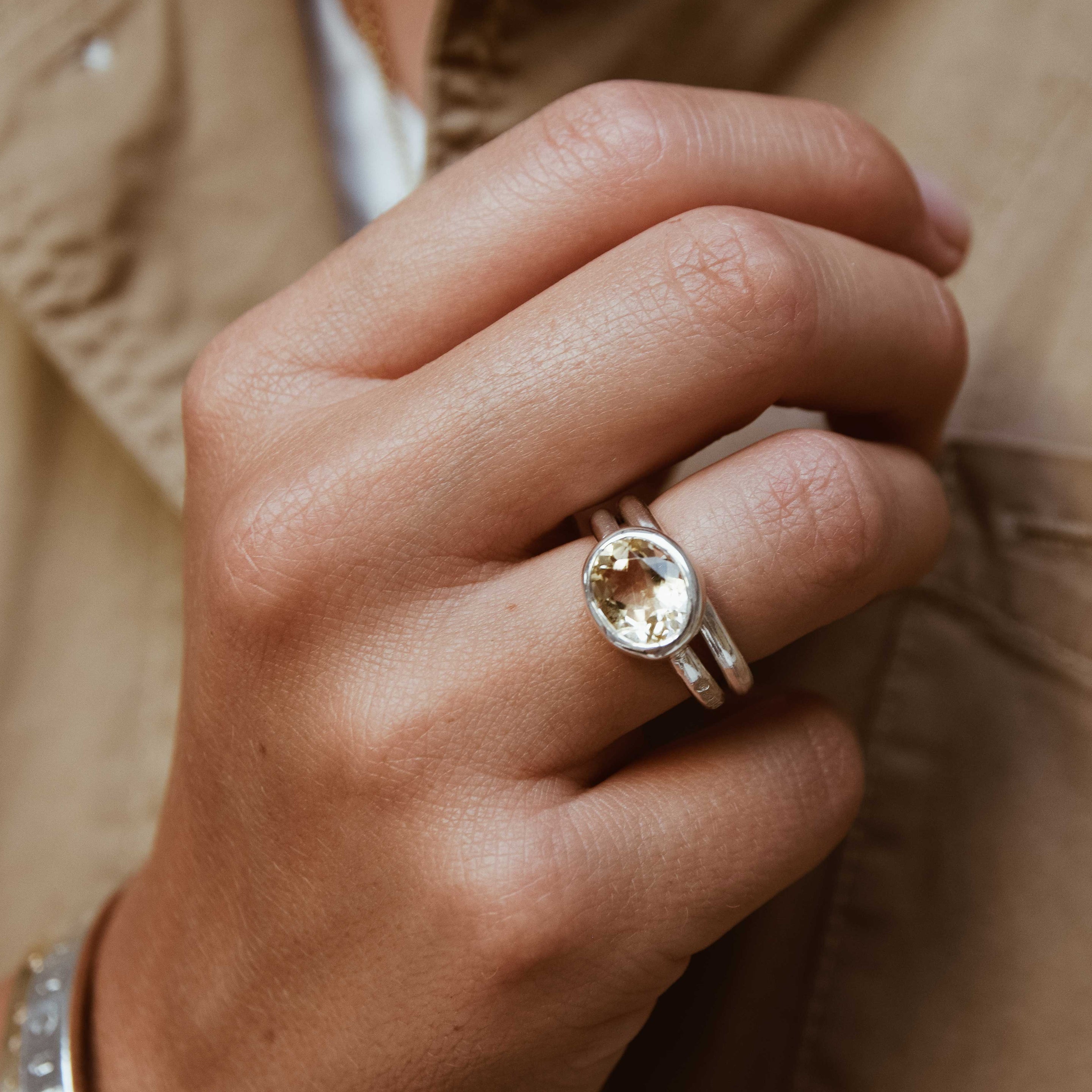 The Silver Citrine Baby Treasure Ring carries a positive energy in abundance, making it a meaningful addition to your collection. Wear it as an embodiment of your personal style or as a symbol of optimism.