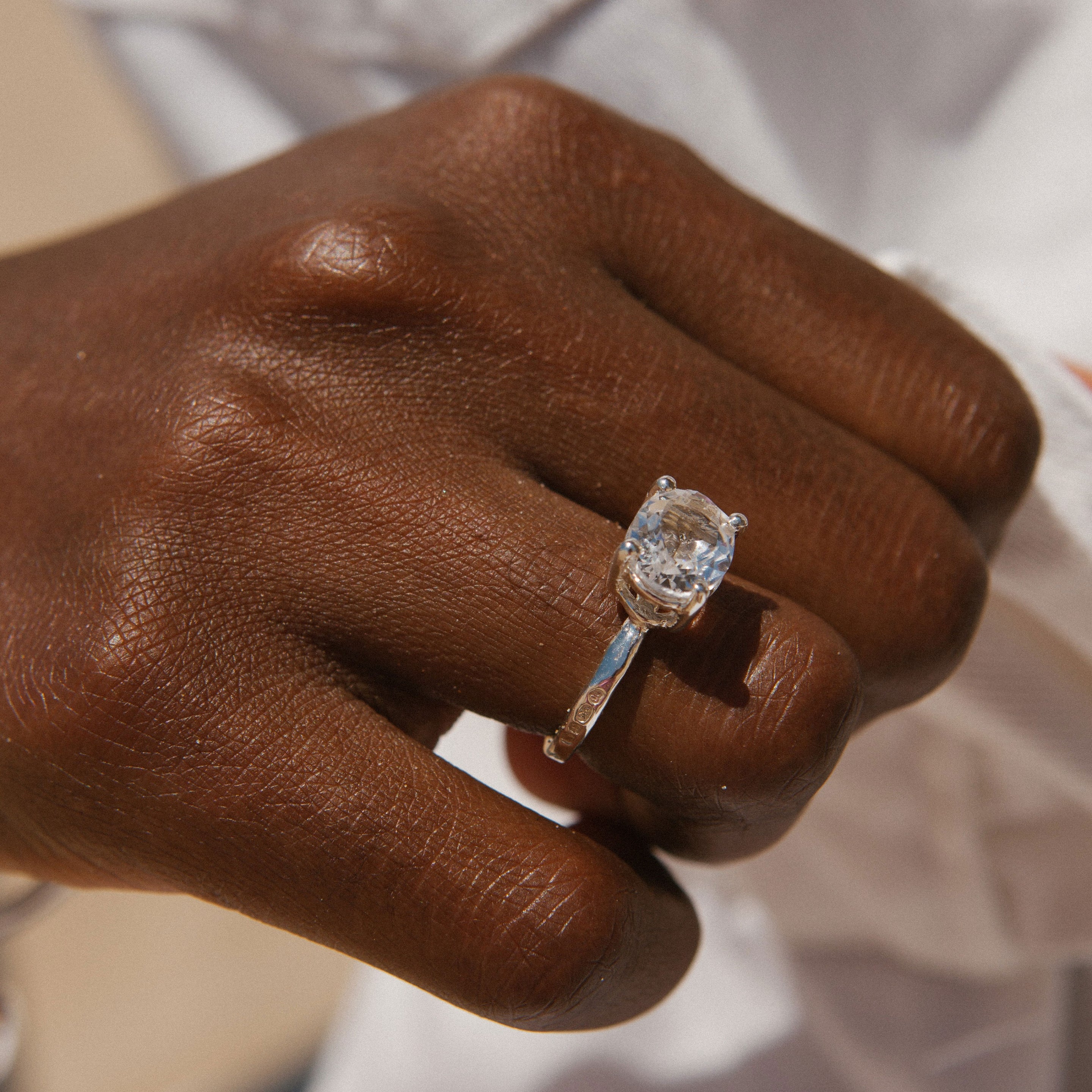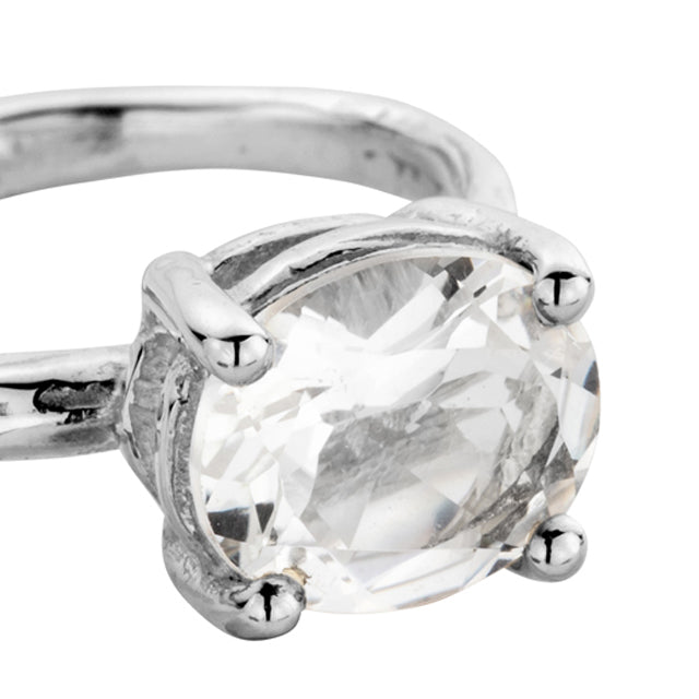 Handcrafted in England using 100% recycled sterling silver and set with a responsibly sourced clear quartz stone by the esteemed British jewellery brand Daniella Draper. Renowned for its clarity and amplifying properties, clear quartz is believed to enhance focus, balance and positive energy. Perfect for stacking or wearing solo, this ring is versatile enough for both casual and special occasions.