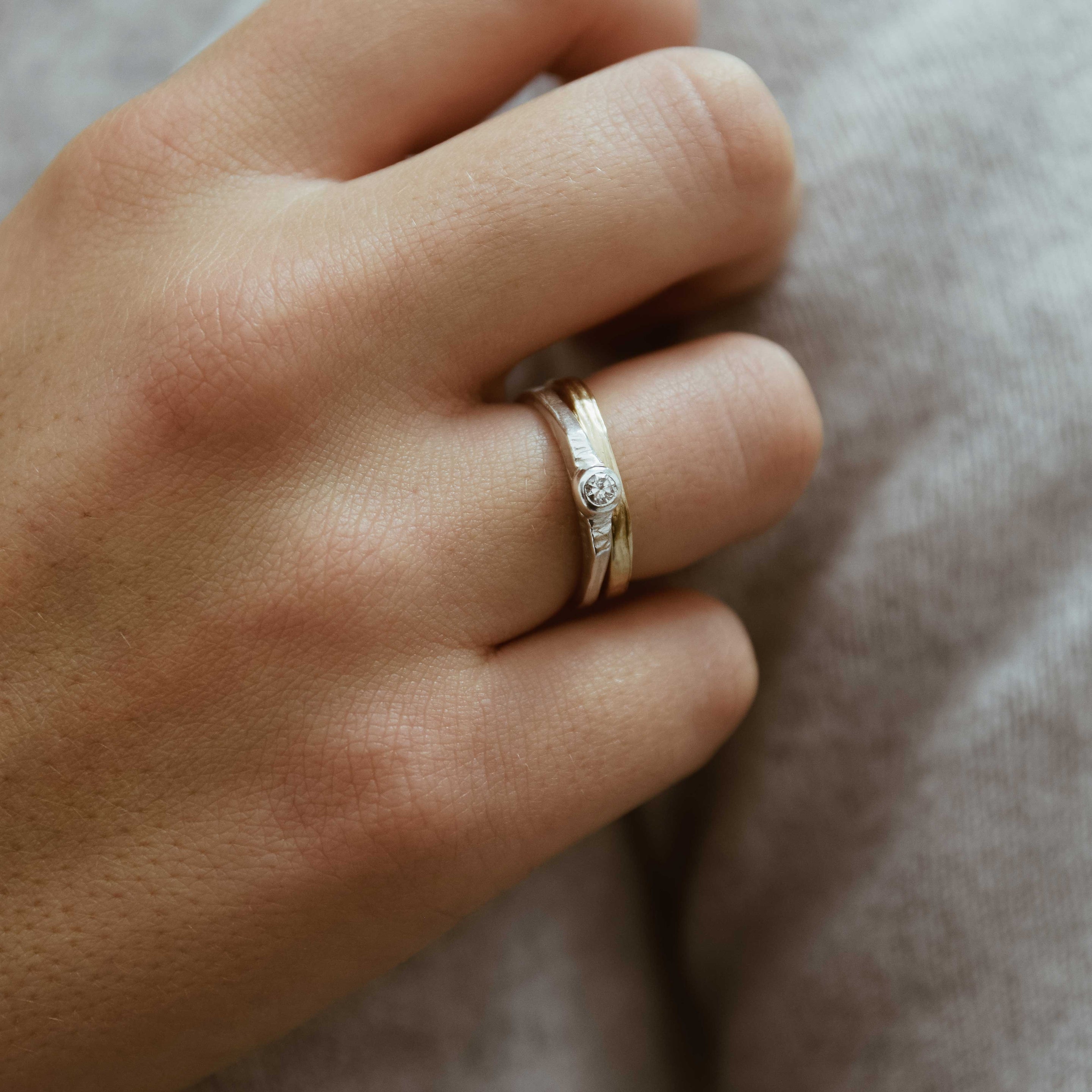 The Diamond Promise Ring is made using 100% recycled solid sterling silver & set with a sparkly diamond. Wear alone or stack with other DD rings to create your own unique look!