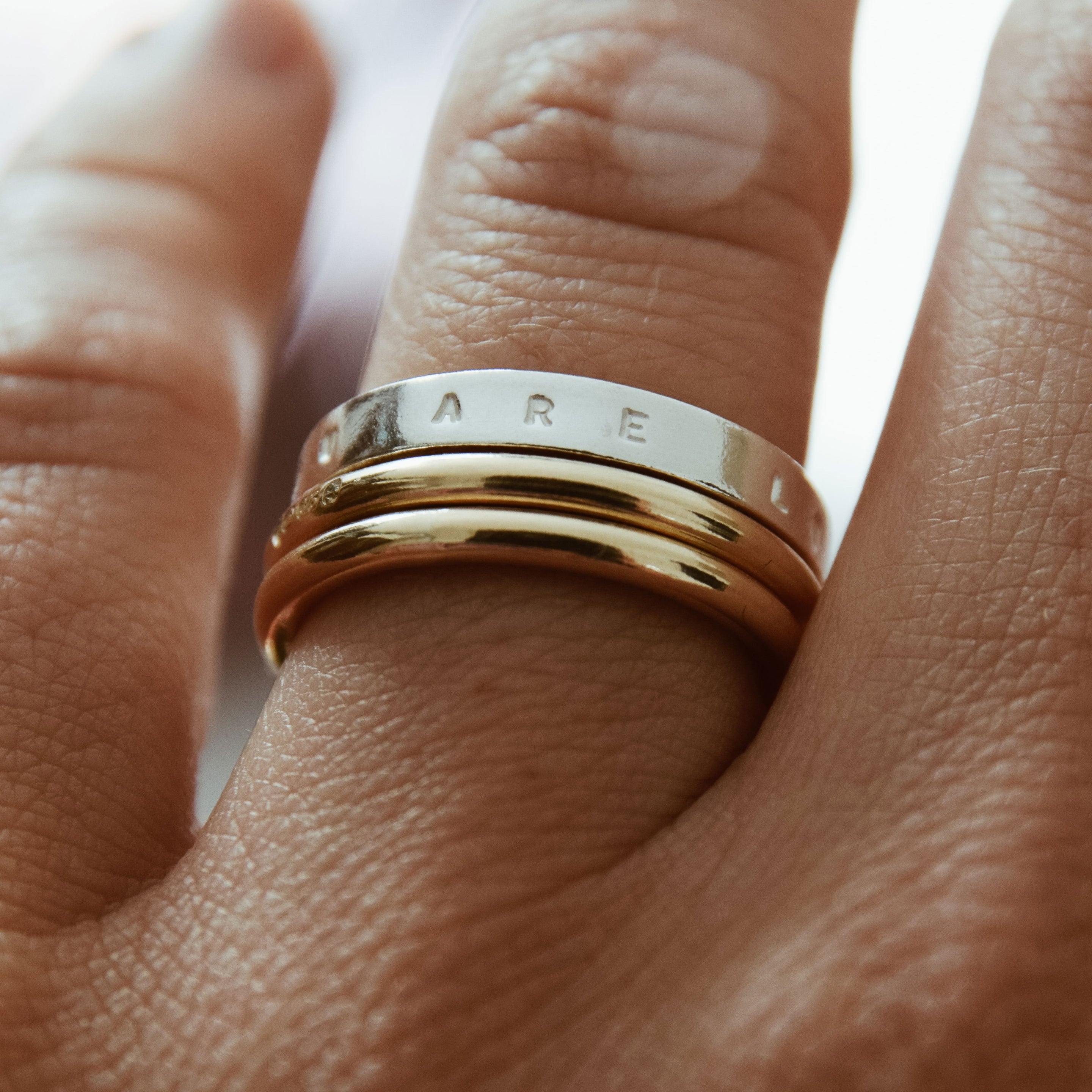 Personalise your ring with our complementary hand stamping service. Whether its a name, a meaningful word or a cherished date, have up to 15 letters hand stamped with love to create the perfect gift for any occasion.