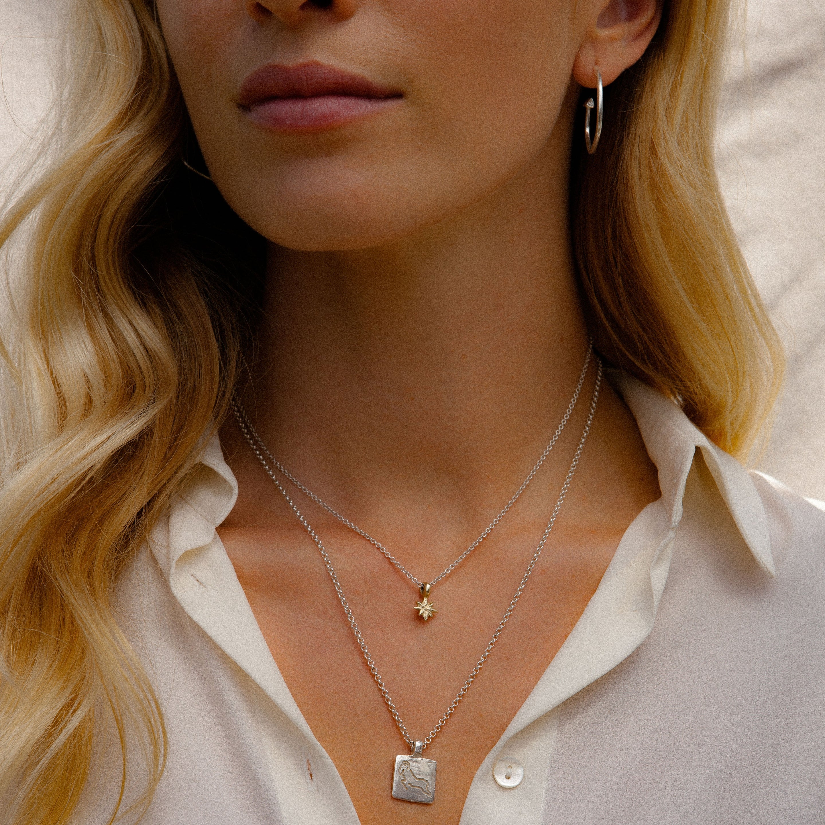 The Baby North Star Necklace is made using 100% recycled solid sterling silver & 9ct yellow gold. Wear alone or layer with other DD necklaces to create your own unique look!