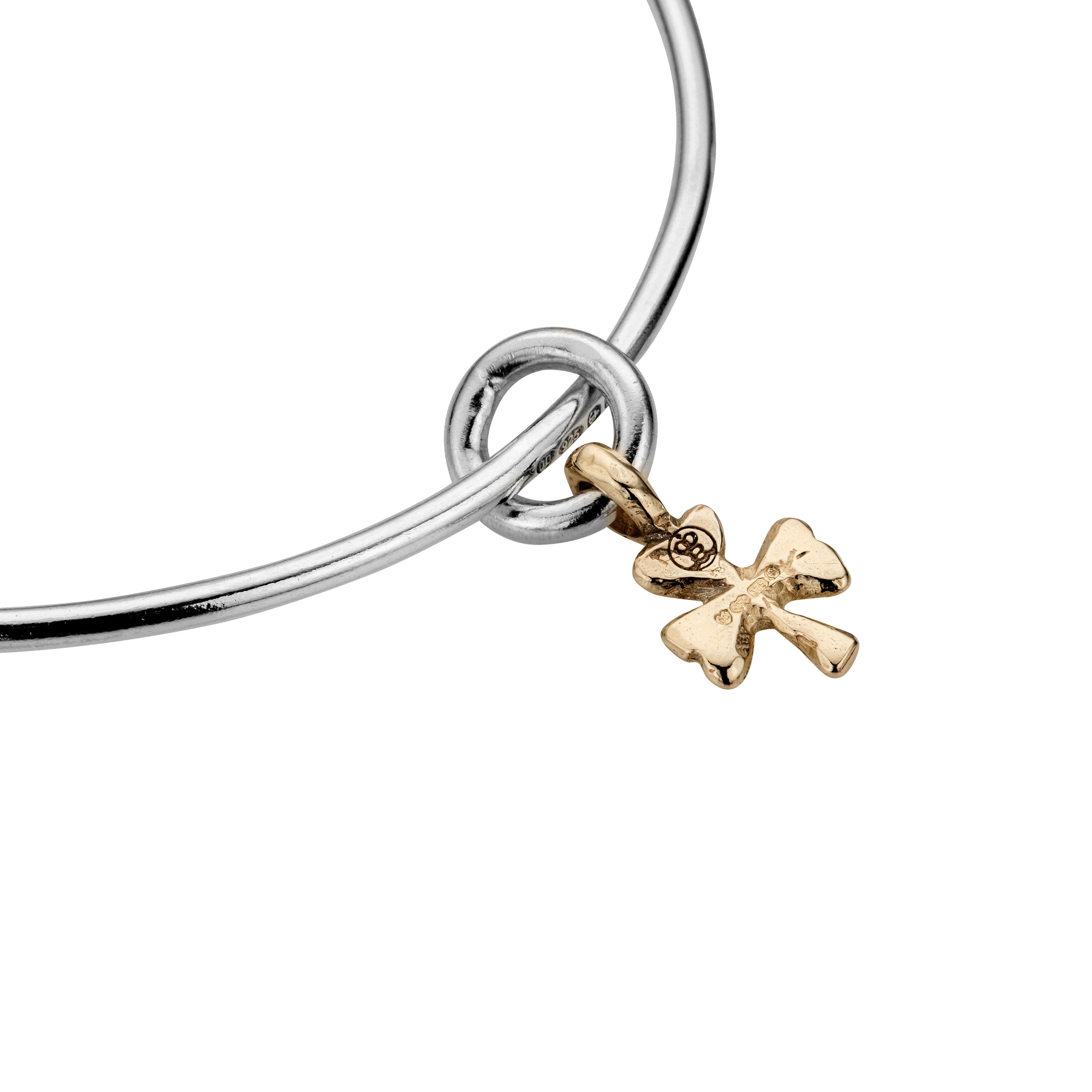 The Baby Shamrock Bangle is made using 100% recycled solid sterling silver & 9ct yellow gold. Wear alone or stack with other DD bangles to create your own unique look!