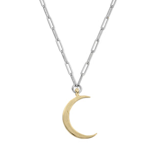 Silver & Gold Large Crescent Moon Trace Chain Necklace