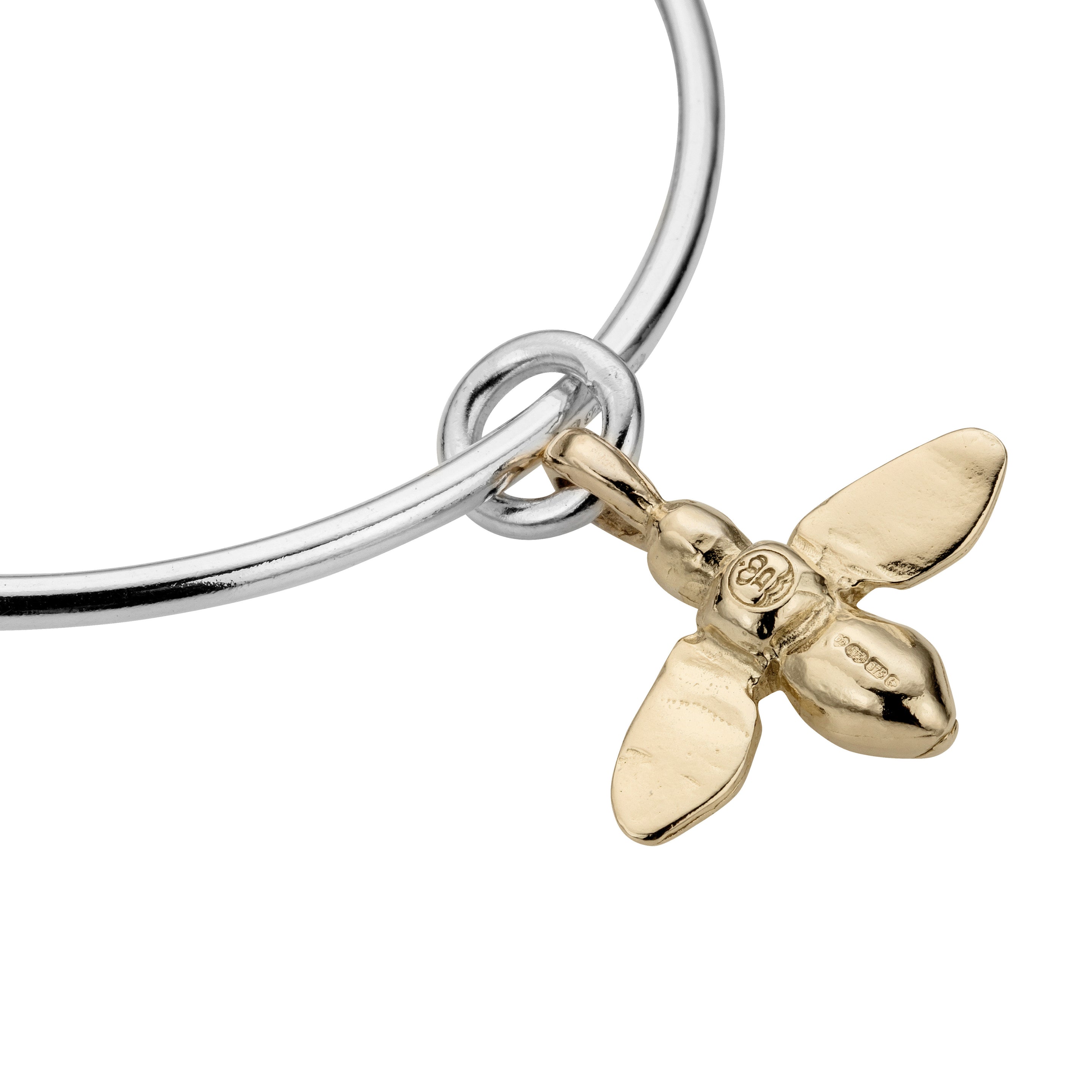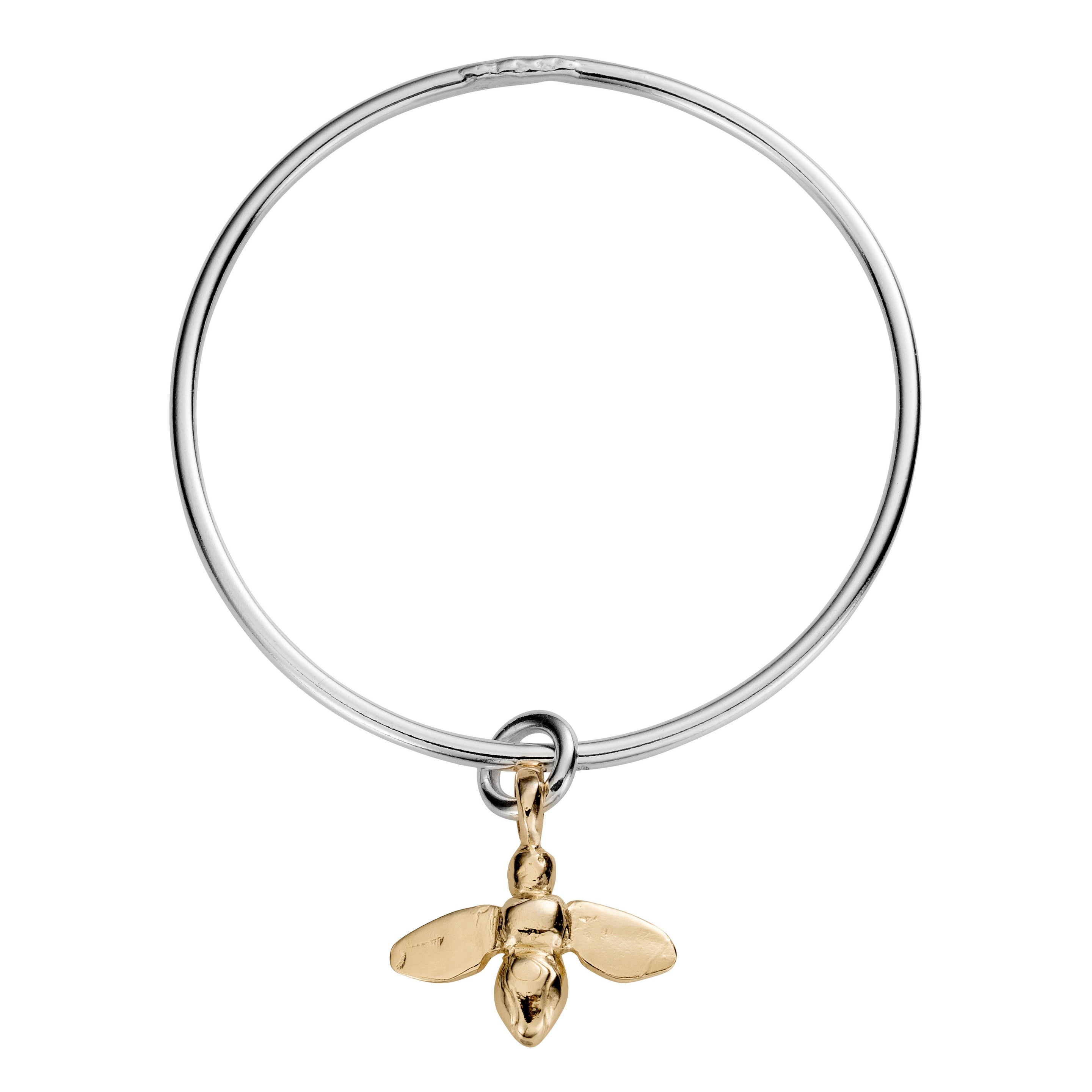 The Large Honey Bee Bangle is made using 100% recycled solid sterling silver & 9ct yellow gold. Wear alone or stack with other DD bangles to create your own unique look!