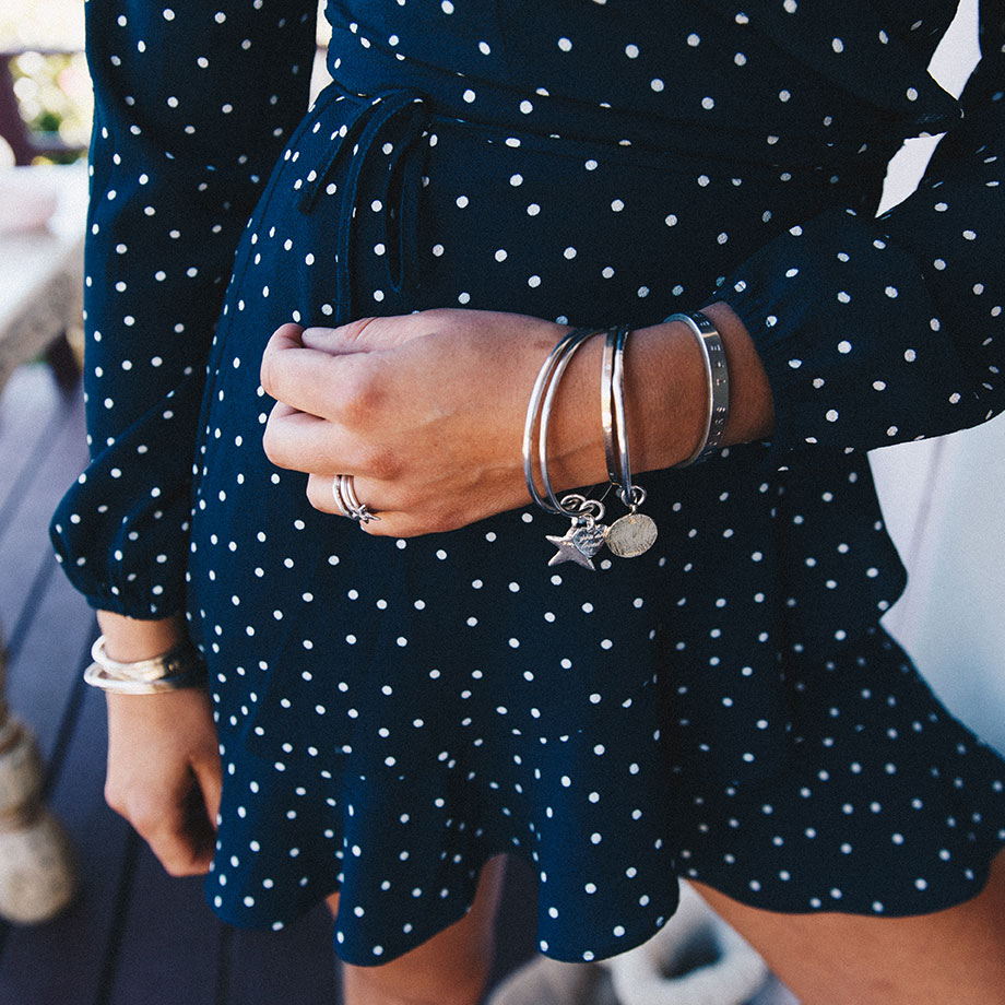 The Large Moon Bangle is made using 100% recycled solid sterling silver & 9ct yellow gold. Wear alone or stack with other DD bangles to create your own unique look!