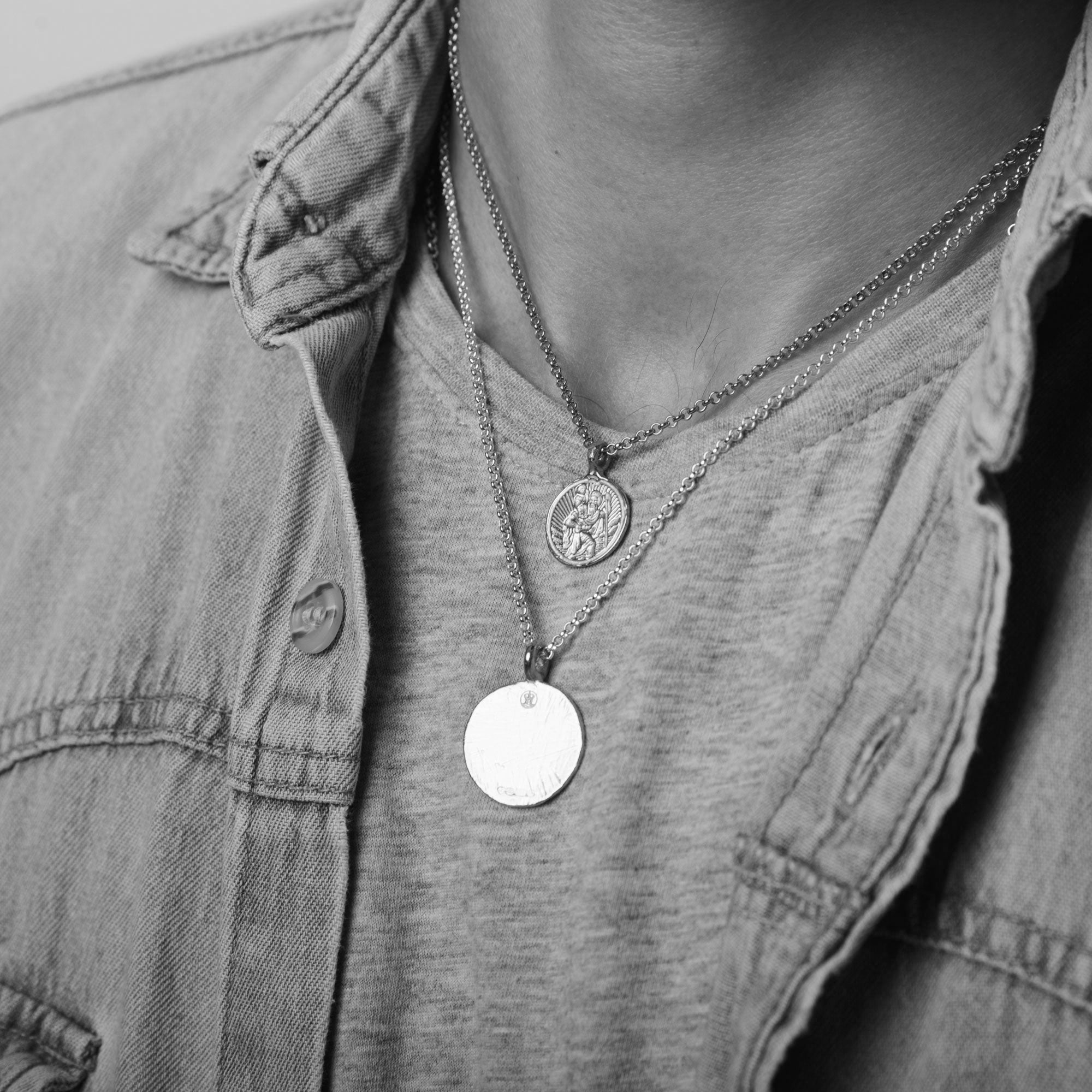 The Medium St Christopher Necklace is made using 100% recycled solid sterling silver & 9ct yellow gold. Wear alone or layer with other DD necklaces to create your own unique look!