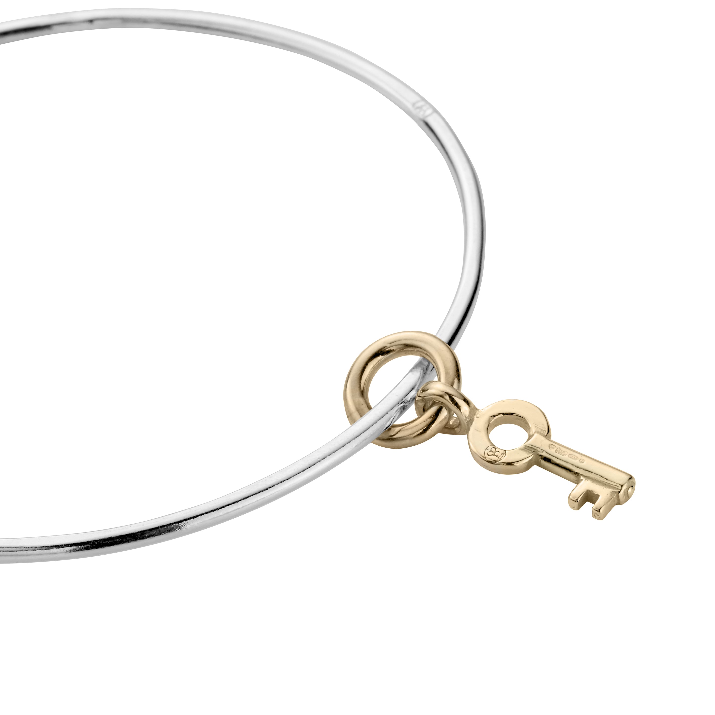 The Mini Dreamer's Key Bangle is made using 100% recycled solid sterling silver & 9ct Gold. Wear alone or layer with other DD bracelets & bangles to create your own unique look!