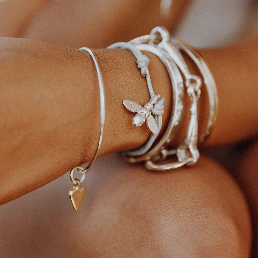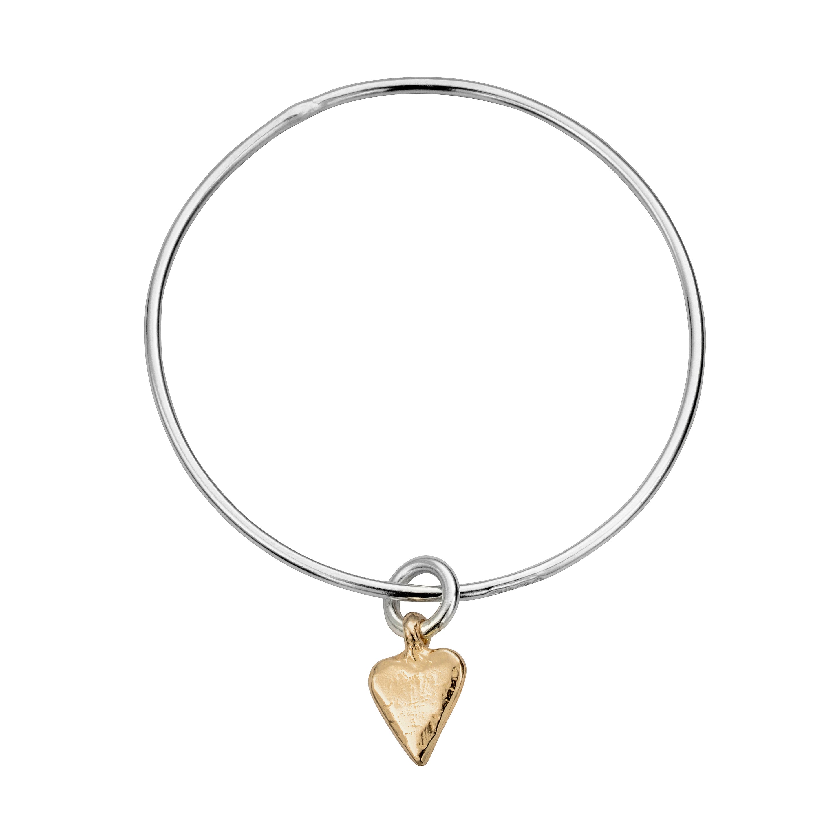 The Mini Heart Bangle is made using 100% recycled solid sterling silver & 9ct yellow gold. Wear alone or stack with other DD bangles to create your own unique look!