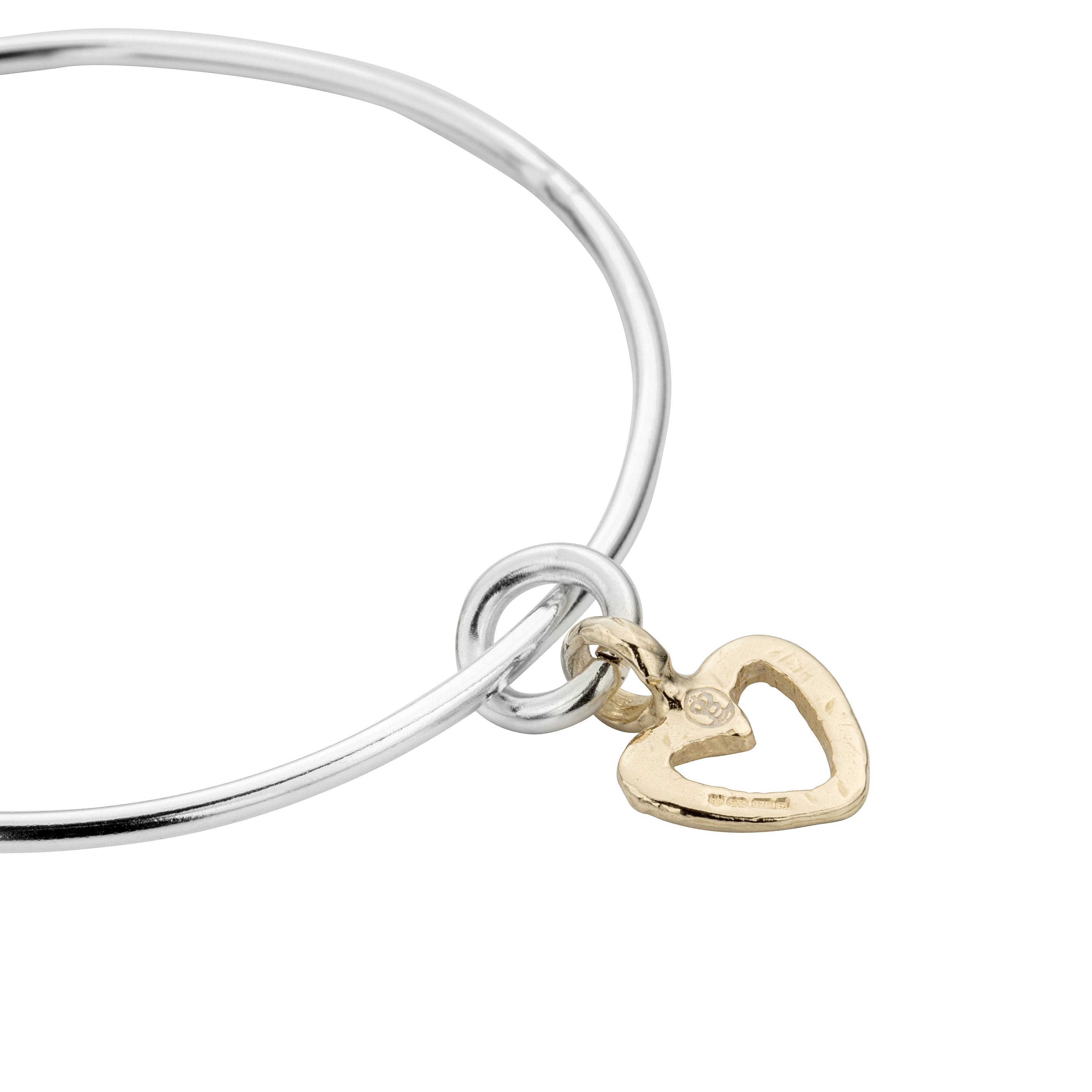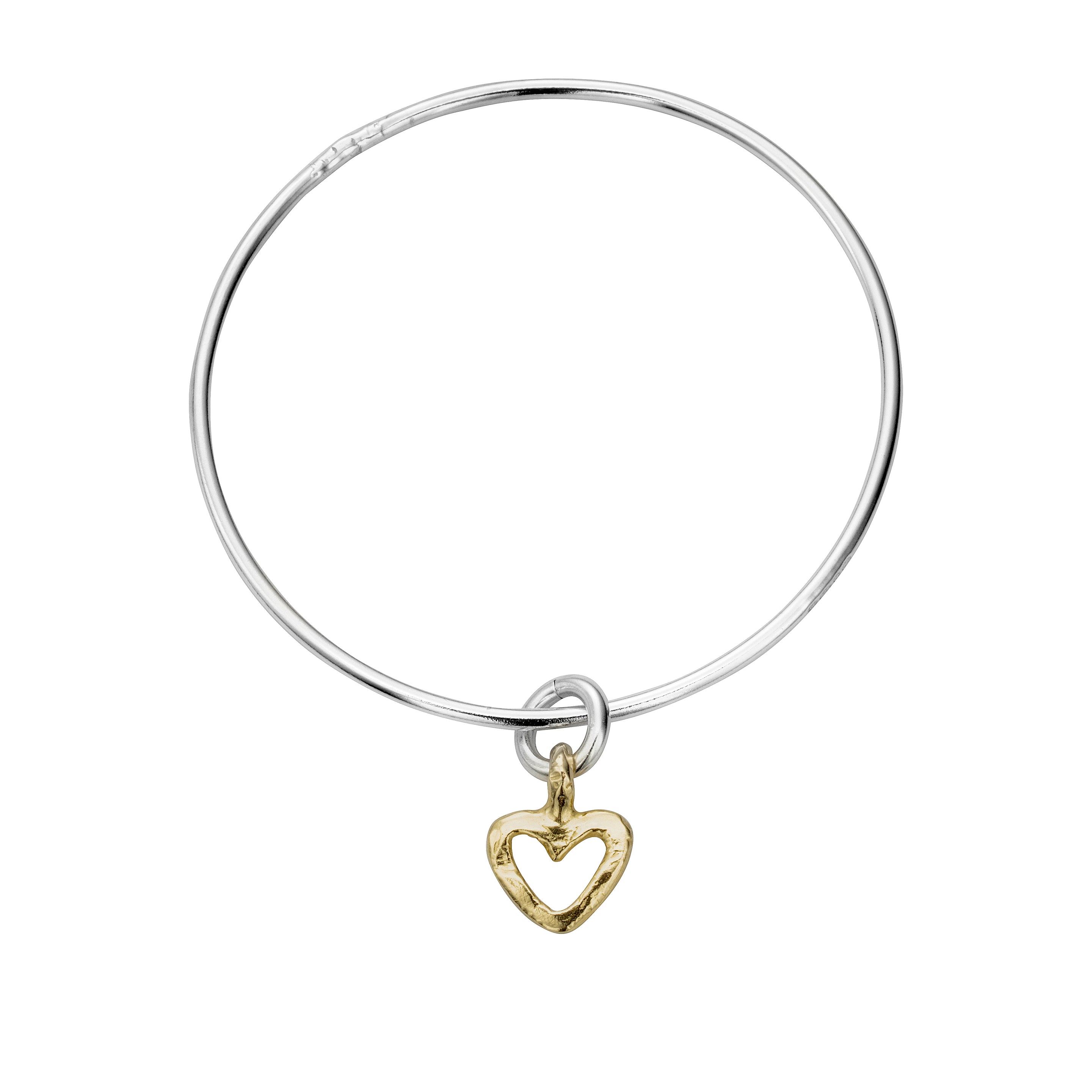 The Mini Open Heart Bangle is made using 100% recycled solid sterling silver & 9ct yellow gold. Wear alone or stack with other DD bangles to create your own unique look!