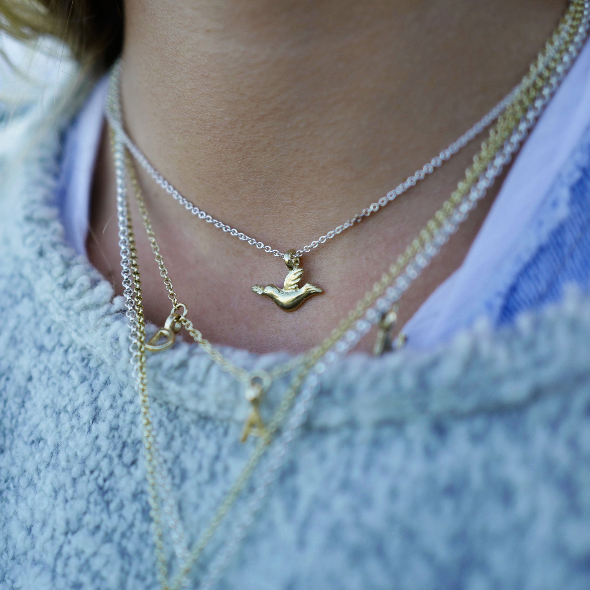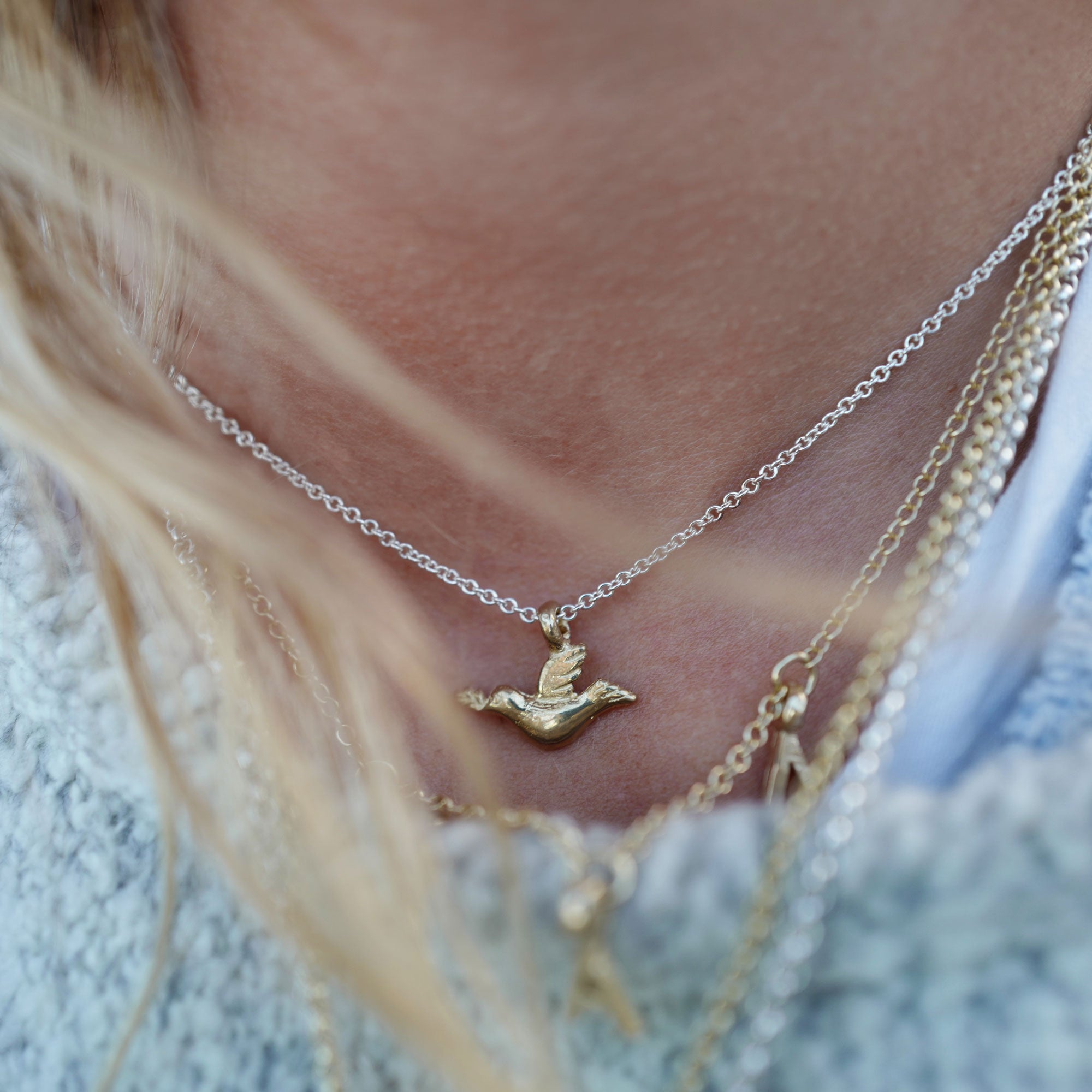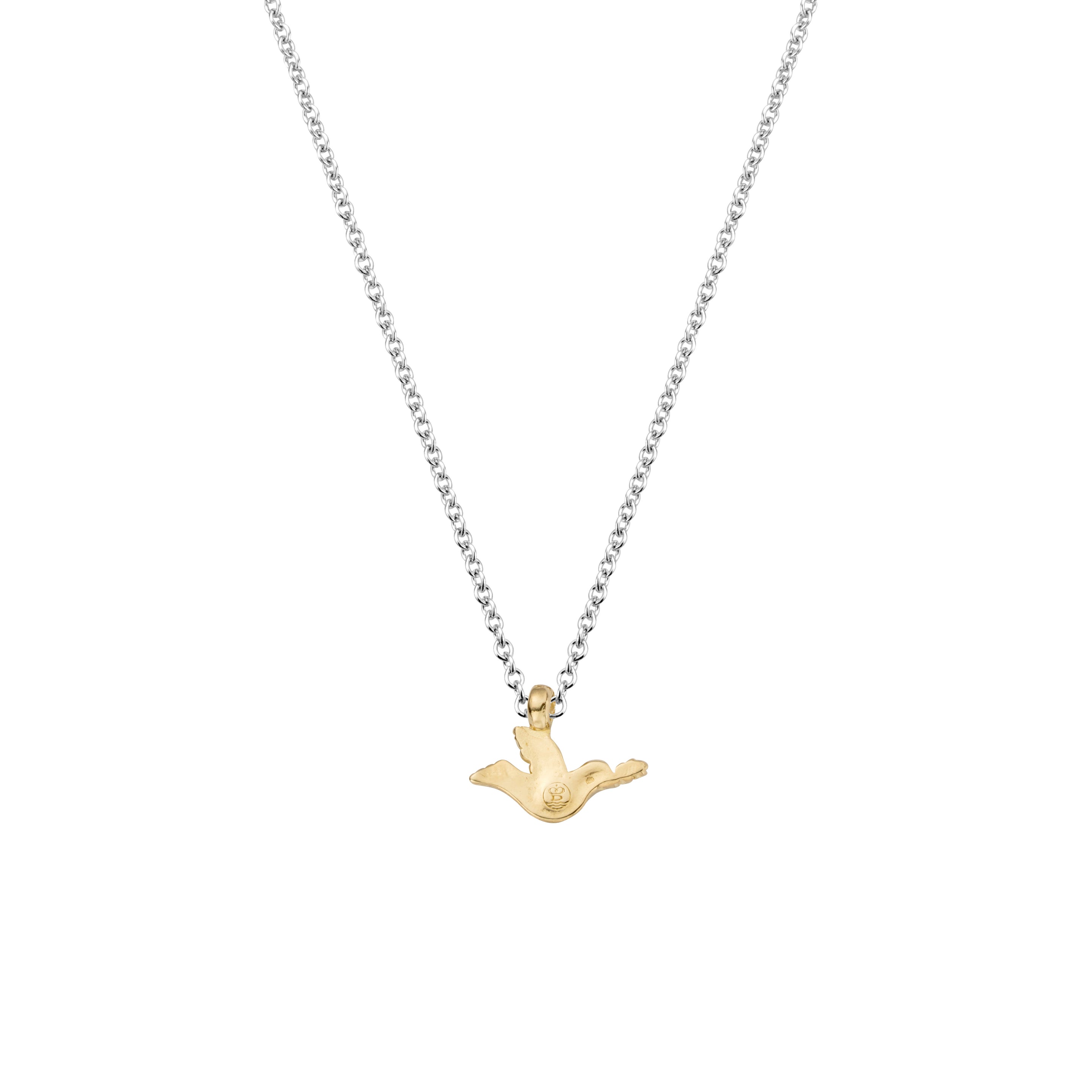 The Mini Turtle Dove Necklace is made using 100% recycled solid sterling silver & 9ct yellow gold. Wear alone or layer with other DD necklaces to create your own unique look!
