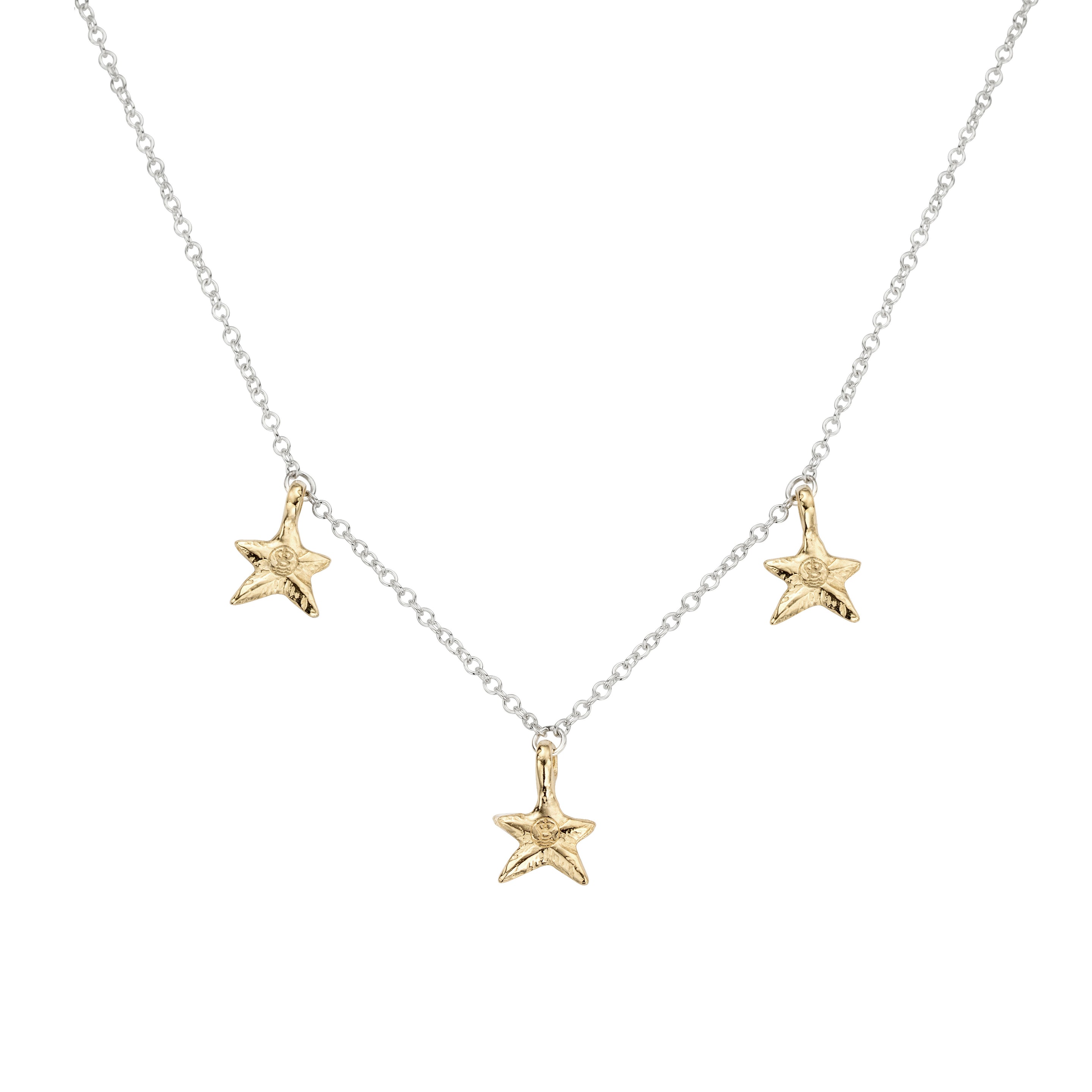 One of Daniella's iconic designs, the Three Star Necklace can be worn alone or layered with other DD necklaces. Made using 100% recycled solid sterling silver & 9ct yellow gold.