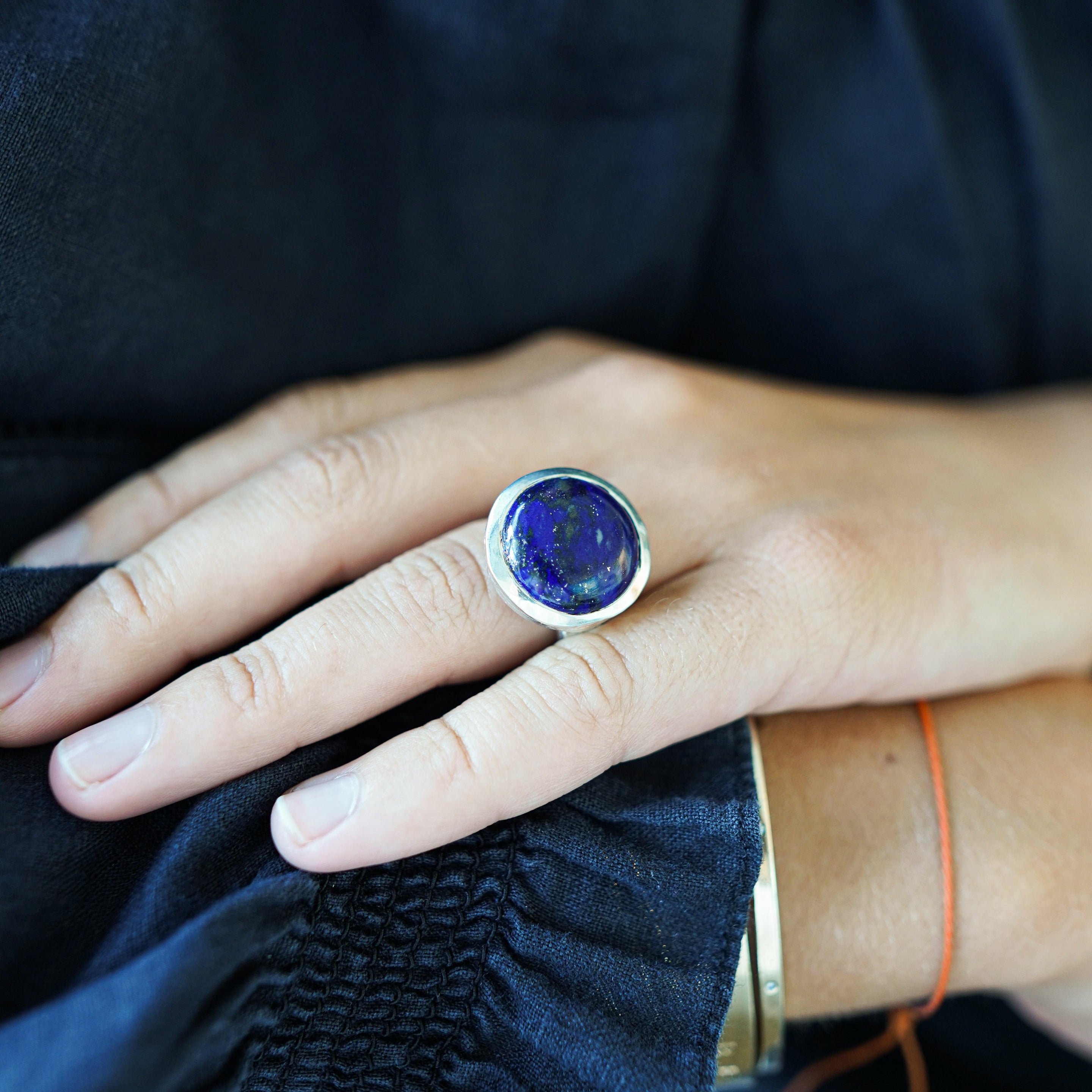 The Maxi Mood Ring is a unique twist on the bestselling Mood Ring. Made using 100% recycled solid sterling silver & set with a beautiful lapis lazuli. Wear alone or stack with other DD rings to create your own unique look!