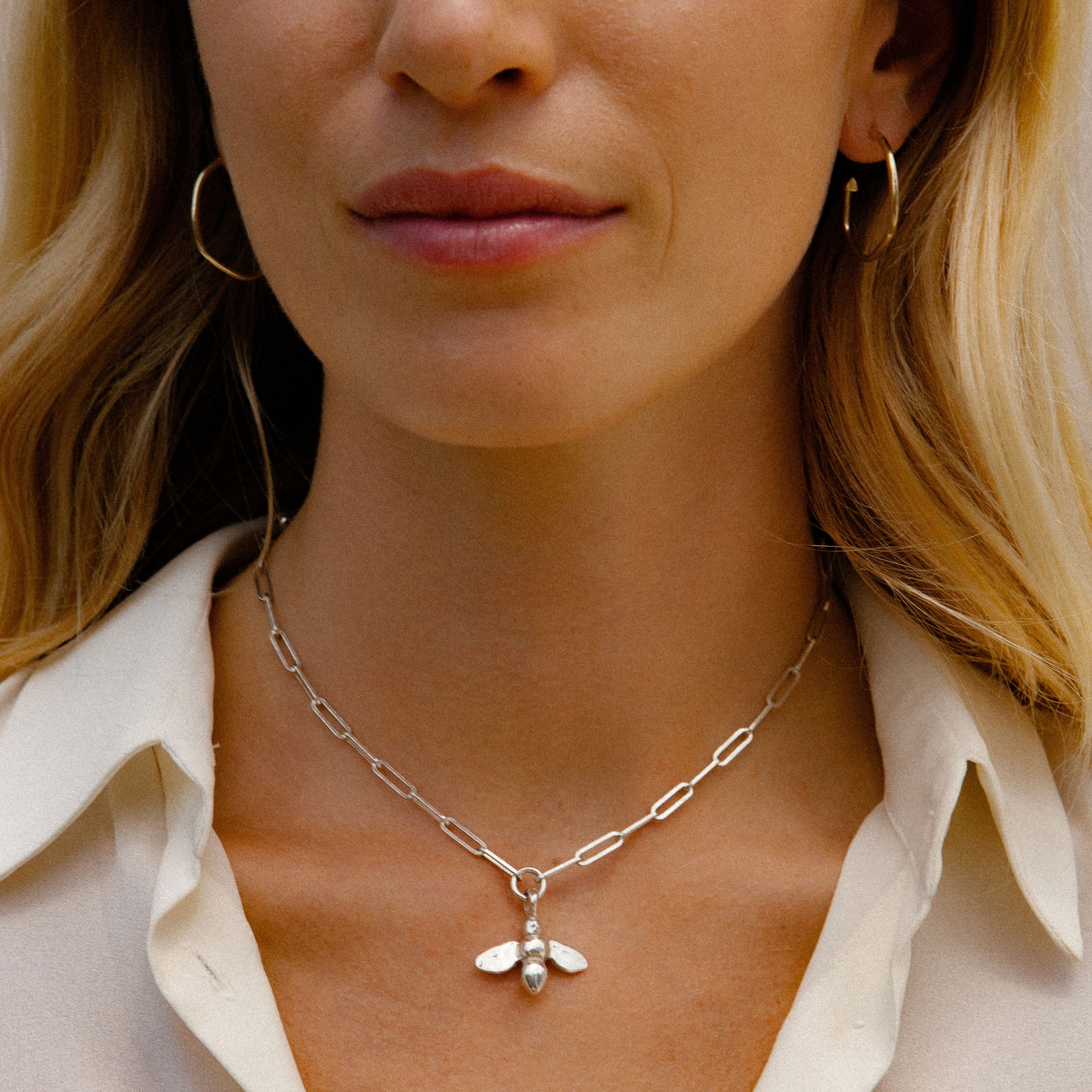 Silver Large Honey Bee Trace Chain Necklace